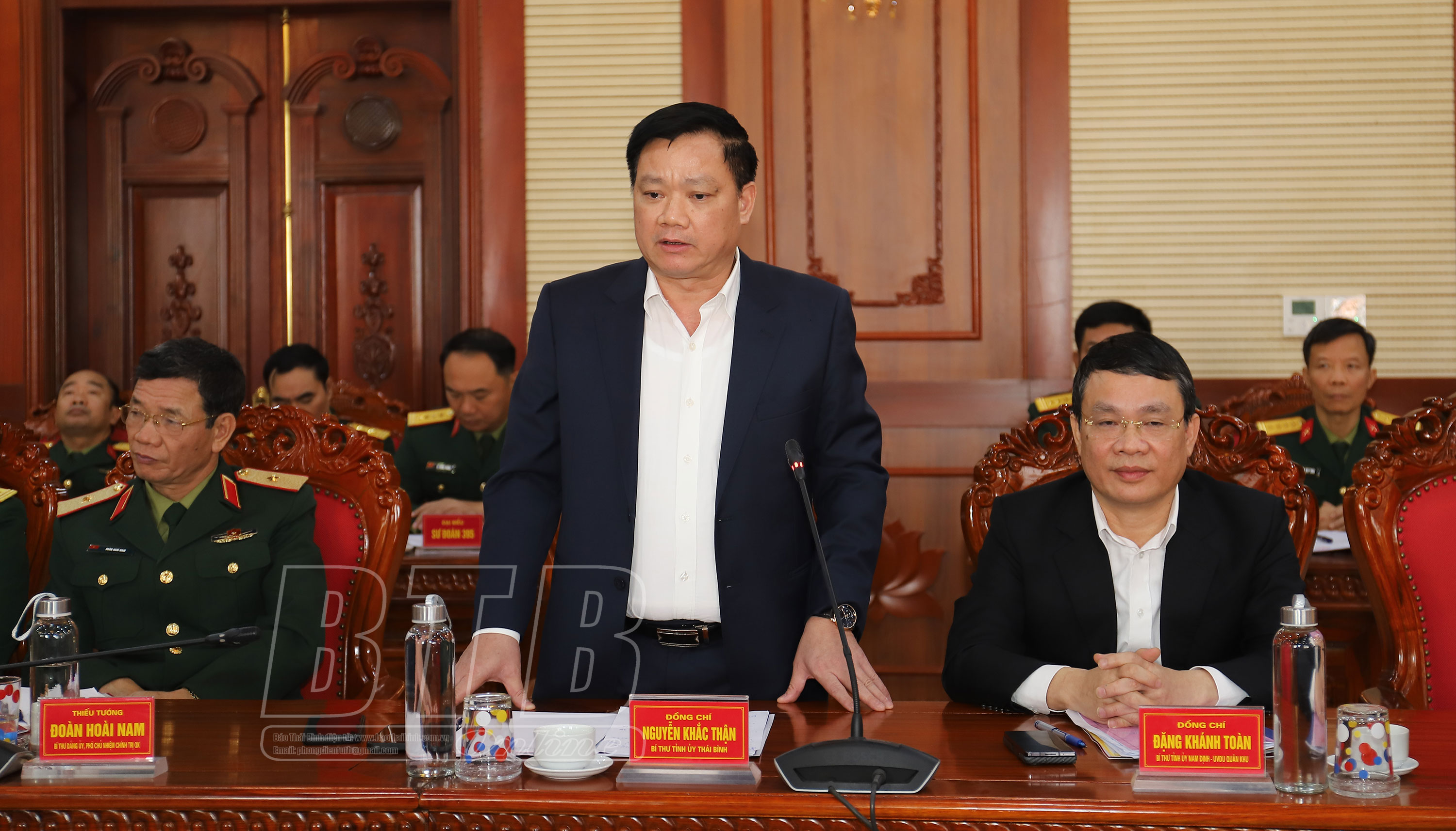 Phát biểu tại hội nghị, đồng chí Nguyễn Khắc Thận, Bí thư Tỉnh ủy, Chủ tịch UBND tỉnh, Bí thư Đảng ủy Quân sự tỉnh báo cáo tóm tắt kết quả Thái Bình đã đạt được công tác xây dựng Đảng và hệ thống chính trị, phát triển kinh tế - xã hội, thực hiện nhiệm vụ quân sự, quốc phòng địa phương và khẳng định trong thành tích chung đó có sự tạo điều kiện, hỗ trợ rất tích cực của Bộ Quốc phòng, Quân khu 3.
