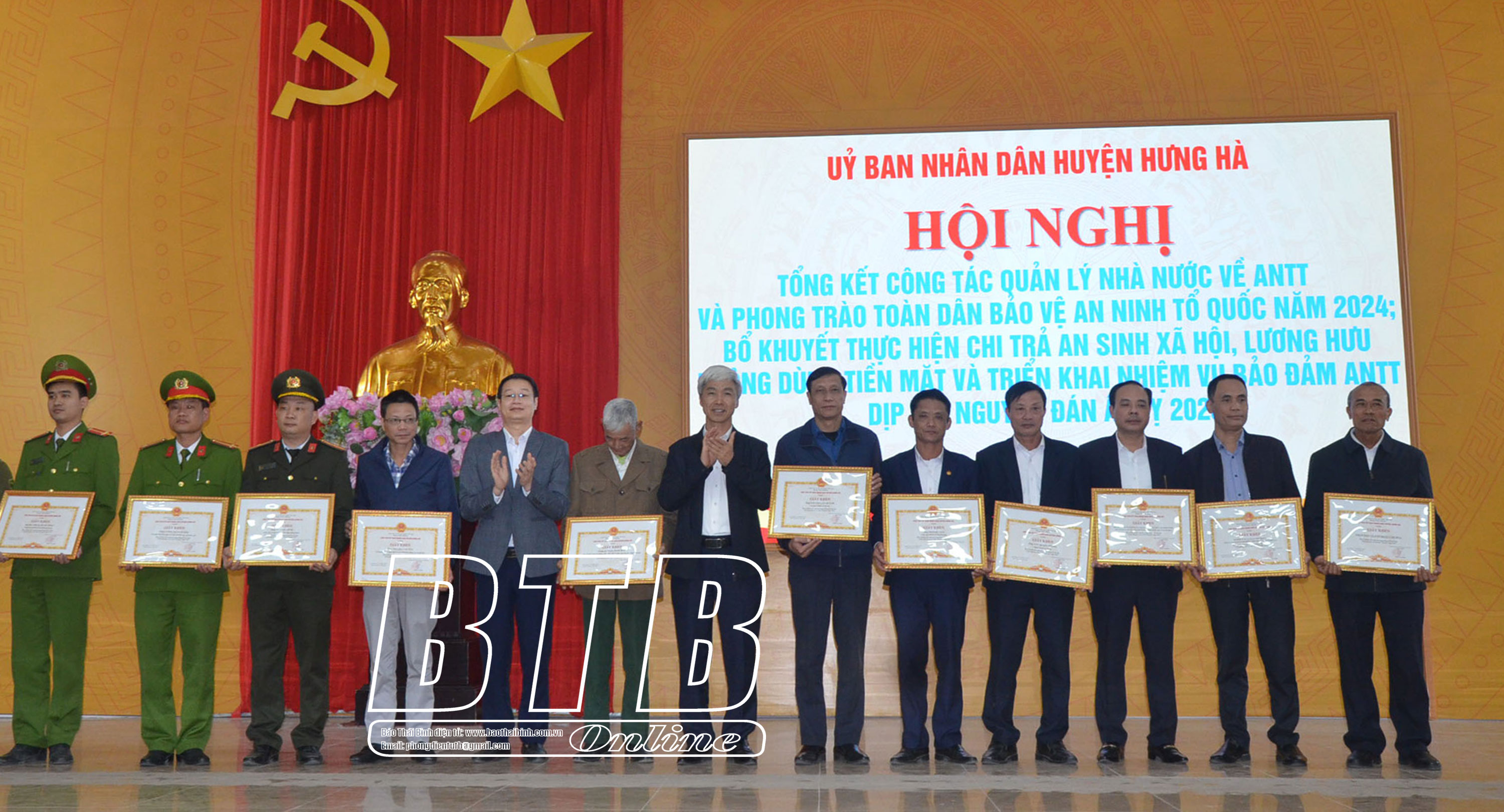 Tại hội nghị, huyện Hưng Hà đã triển khai Quyết định số 836 ngày 6/1/2025 của Huyện ủy Hưng Hà về giám sát công tác lãnh đạo, chỉ đạo và tổ chức thực hiện Luật 42/2024/QH15 về quản lý, sử dụng vũ khí, vật liệu nổ, công cụ hỗ trợ và Nghị định số 137/2020/NĐ-CP của Chính phủ về quản lý, sử dụng pháo, công tác phòng cháy, chữa cháy, bảo đảm ANTT, công tác tuyển chọn gọi công dân nhập ngũ, thực hiện nghĩa vụ quân sự và nghĩa vụ tham gia Công an nhân dân năm 2025; kế hoạch mở đợt cao điểm thực hiện Luật Quản lý sử dụng vũ khí, vật liệu nổ, công cụ hỗ trợ và Nghị định số 137/2020/NĐ-CP của Chính phủ về quản lý và sử dụng pháo những tháng cuối năm 2024 và tết Nguyên đán Ất Tỵ 2025; công bố các quyết định kiện toàn ban chỉ đạo, phân công nhiệm vụ cho các thành viên và quyết định thành lập 33 tổ công tác của huyện; kế hoạch bảo đảm trật tự an toàn giao thông trên địa bàn huyện; kế hoạch triển khai định danh điện tử cho cơ quan, tổ chức trên địa bàn huyện; bổ khuyết thực hiện chính sách chi trả an sinh xã hội, lương hưu không dùng tiền mặt…