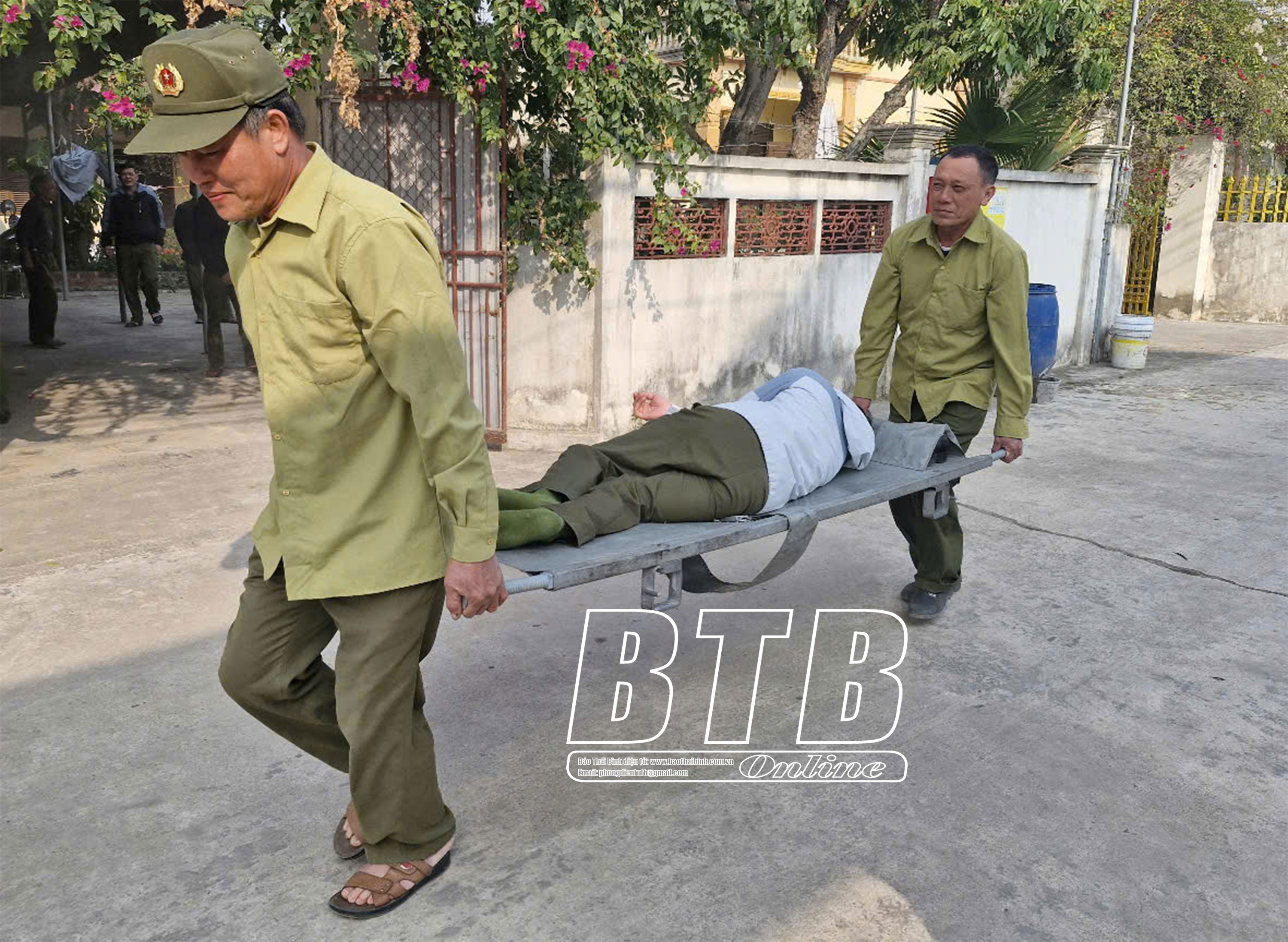 Với tình huống giả định: Vào hồi 14 giờ 30 phút, ngày 17/1, xảy ra vụ cháy tại cơ sở sản xuất hương, thôn Văn Quan, xã Duyên Hải. Nguyên nhân vụ cháy là do sự cố chập điện tại khu vực sản xuất. Tại thời điểm xảy ra vụ cháy có khoảng 10 công nhân đang làm việc. Ngay sau khi phát hiện đám cháy, lực lượng chữa cháy cơ sở đã nhanh chóng triển khai các biện pháp xử lý và phân công nhiệm vụ cụ thể cho từng bộ phận. Nhận định đám cháy có khả năng phát triển mạnh, Đội trưởng Đội PCCC cơ sở liên lạc với tổng đài 114 yêu cầu trợ giúp. Ngay sau khi nhận được tin báo, Trung tâm thông tin chỉ huy - Phòng Cảnh sát PCCC và CNCH, Công an tỉnh phối hợp với Đội Cảnh sát chữa cháy và CNCH khu vực Quỳnh Phụ huy động 1 xe chỉ huy, 1 xe chữa cháy cùng 10 cán bộ chiến sỹ khẩn trương xuống hiện trường và triển khai đội hình thực hiện các biện pháp PCCC. Với tinh thần khẩn trương, nghiêm túc, các lực lượng tham gia diễn tập đã thực hành thuần thục các biện pháp xử lý khống chế, dập tắt hoàn toàn đám cháy.