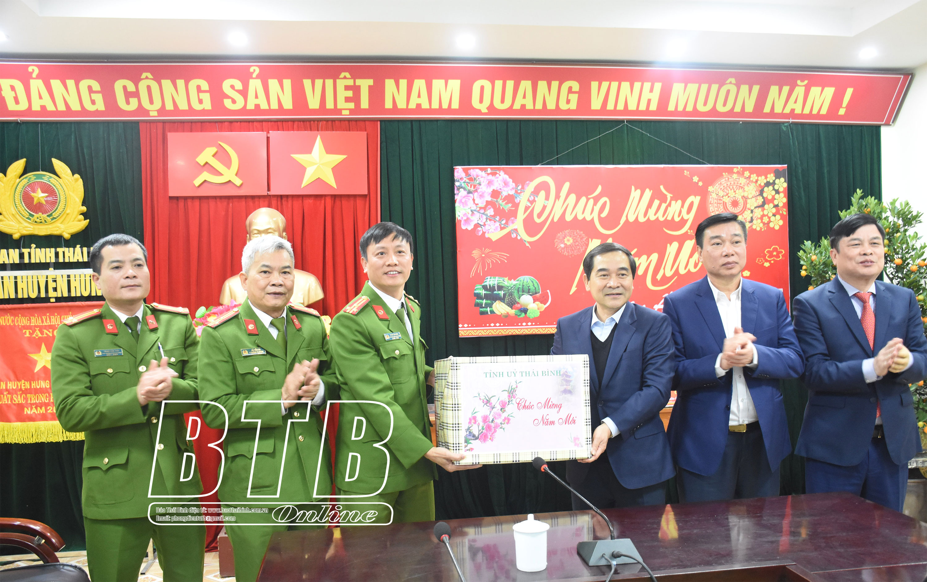 Các đồng chí lãnh đạo tỉnh kiểm tra và trao quà, chúc tết Công an huyện Hưng Hà.
