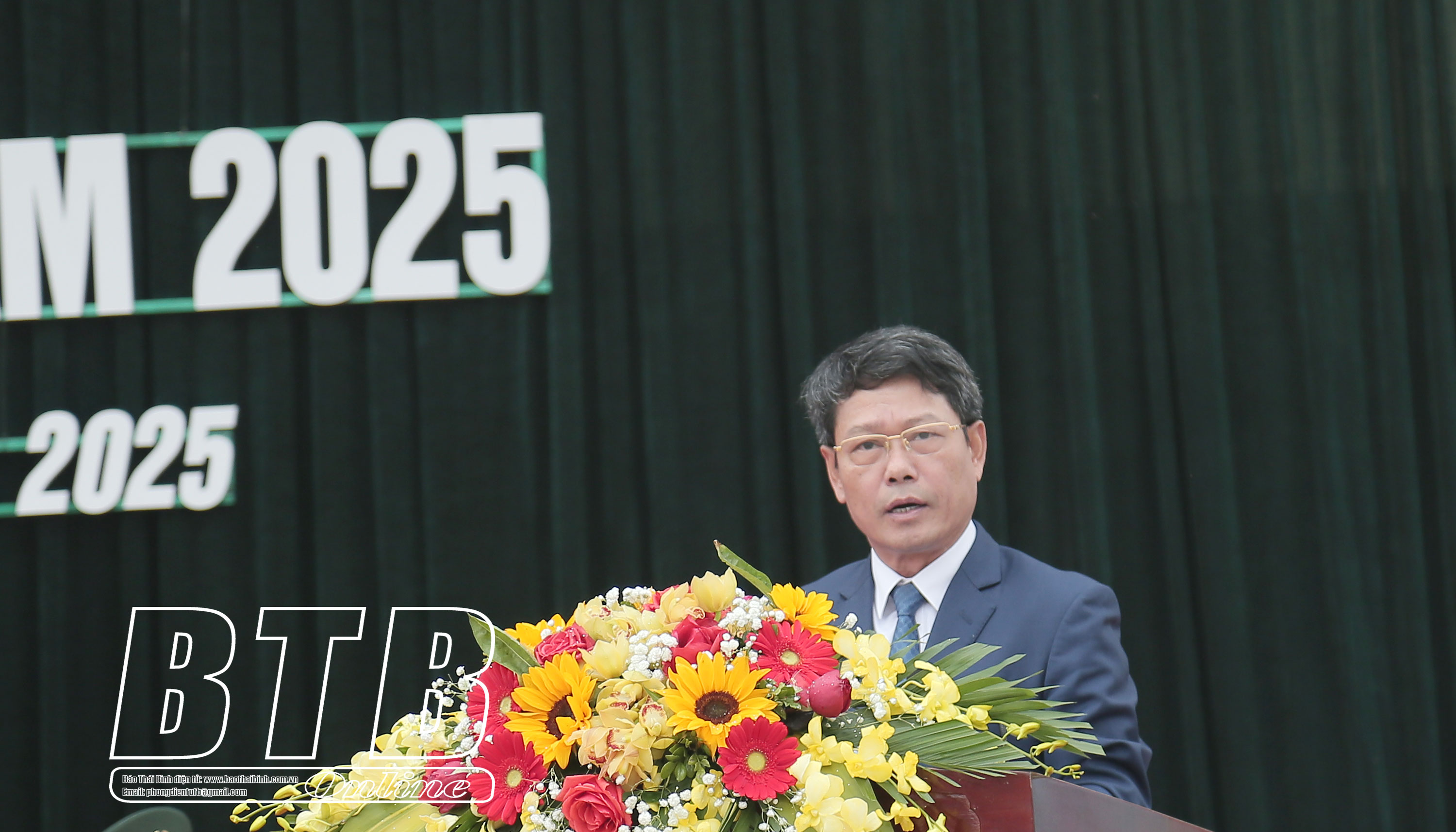 Đồng chí Nguyễn Tiến Thành, Phó Bí thư thường trực Tỉnh ủy, Chủ tịch HĐND tỉnh cùng các đại biểu dự lễ giao, nhận quân năm 2025.