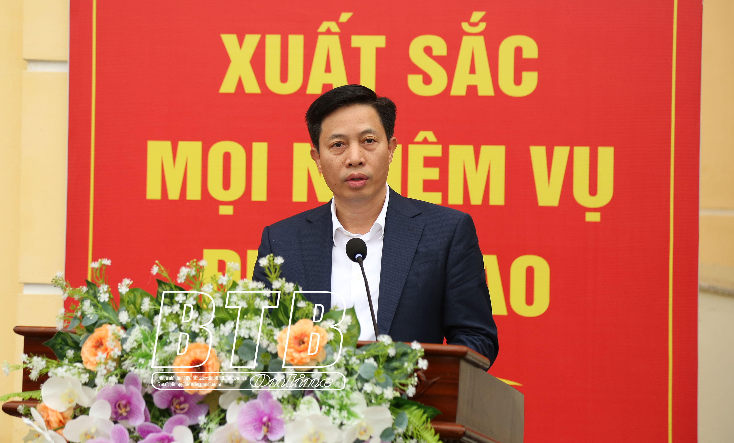 Đồng chí Lại Văn Hoàn, Tỉnh ủy viên, Phó Chủ tịch UBND tỉnh phát biểu tại buổi lễ. Ảnh: Tiến Đạt