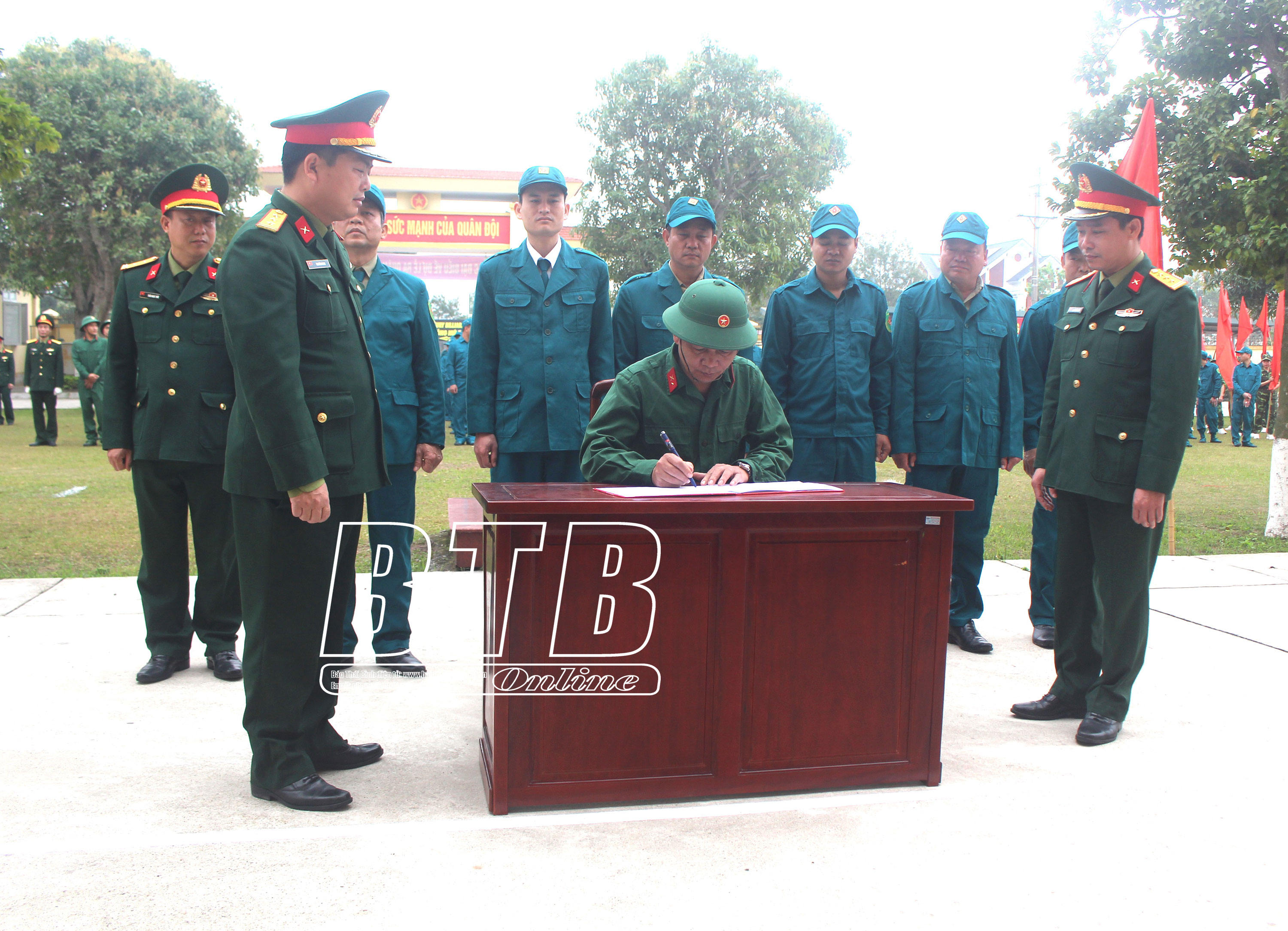 Ký giao ước thi đua tại lễ ra quân huấn luyện. Ảnh: Thu Thủy