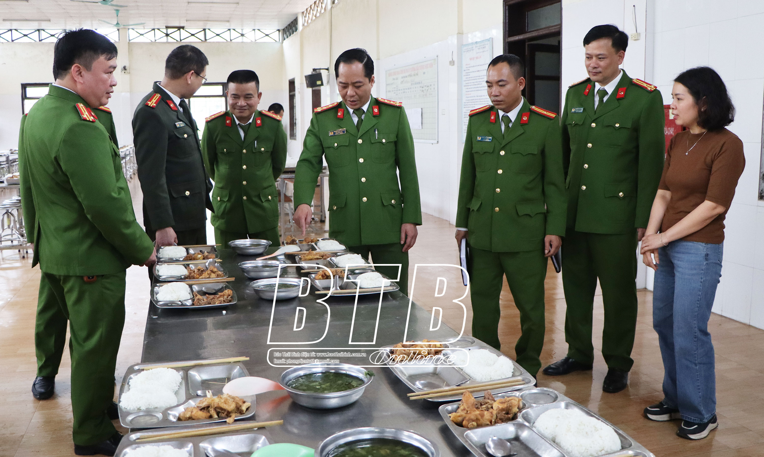 Lãnh đạo Công an tỉnh kiểm tra khu vực bếp ăn tại cơ sở cai nghiện ma túy tỉnh.