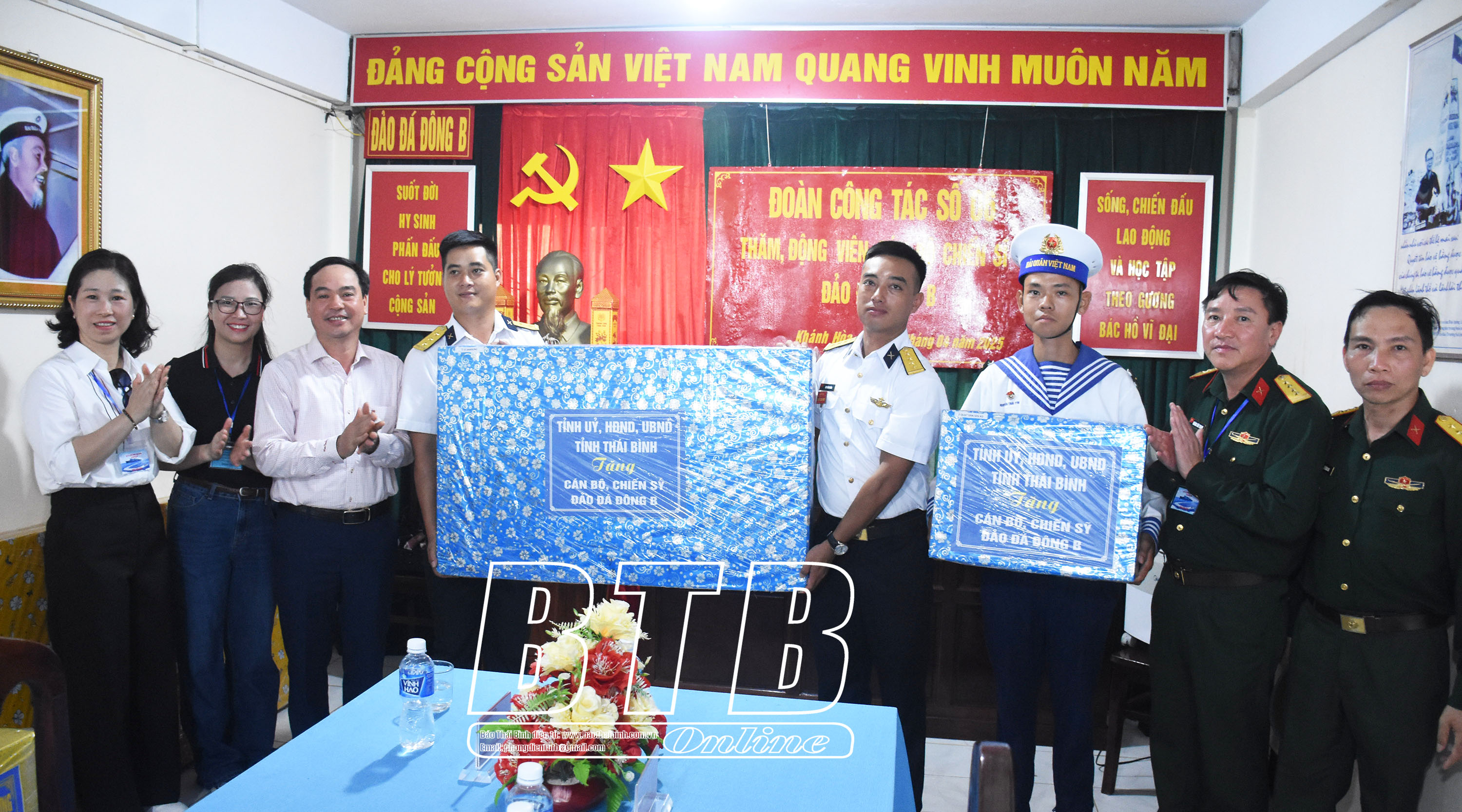 Đồng chí Phó Chủ tịch HĐND tỉnh và đoàn công tác đã ra thăm, động viên và tặng quà của Tỉnh ủy, HĐND, UBND, Ủy ban MTTQ tỉnh cho cán bộ, chiến sĩ và nhân dân tại các đảo: Song Tử Tây, Sinh Tồn, Cô Lin, Đá Đông B, Đá Tây A, Trường Sa và Nhà giàn DK-1. Ân cần hỏi thăm sức khỏe, cuộc sống sinh hoạt của cán bộ, chiến sĩ và các hộ dân đang công tác, sinh sống trên các đảo và nhà giàn, đồng chí Phó Chủ tịch HĐND tỉnh bày tỏ sự cảm phục, biết ơn sâu sắc trước tinh thần vượt khó, sẵn sàng hy sinh vì Tổ quốc của cán bộ, chiến sĩ và nhân dân tại các đảo và nhà giàn. Đồng chí chúc toàn thể cán bộ, chiến sĩ và bà con nhân dân luôn mạnh khỏe, đoàn kết, nỗ lực khắc phục mọi khó khăn, vững chân nơi đầu sóng để bảo vệ chủ quyền biển đảo thiêng liêng của Tổ quốc. Đồng chí Phó Chủ tịch HĐND tỉnh mong cán bộ, chiến sĩ và nhân dân tiếp tục phát huy kết quả đạt được, xây dựng đảo, nhà giàn vững về chính trị, mạnh về phòng thủ, sáng về đạo đức, đoàn kết quân dân vững vàng bảo vệ từng tấc đất, sải biển của quê hương, đất nước.