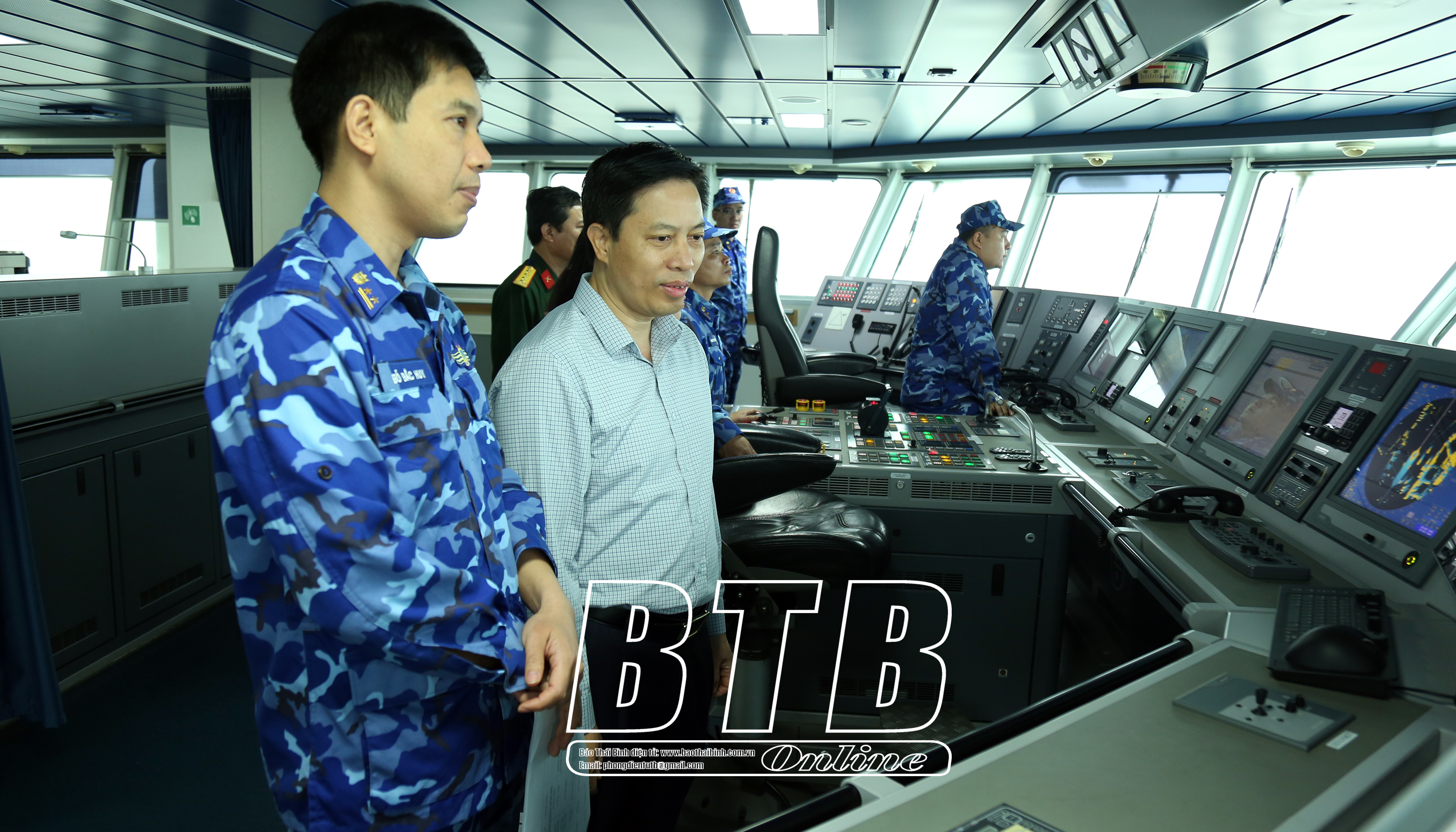 Đồng chí Lại Văn Hoàn, Tỉnh ủy viên, Phó Chủ tịch UBND tỉnh thăm, động viên cán bộ, chiến sĩ là người con quê hương Thái Bình hiện đang công tác trên tàu Cảnh sát biển 8004.
