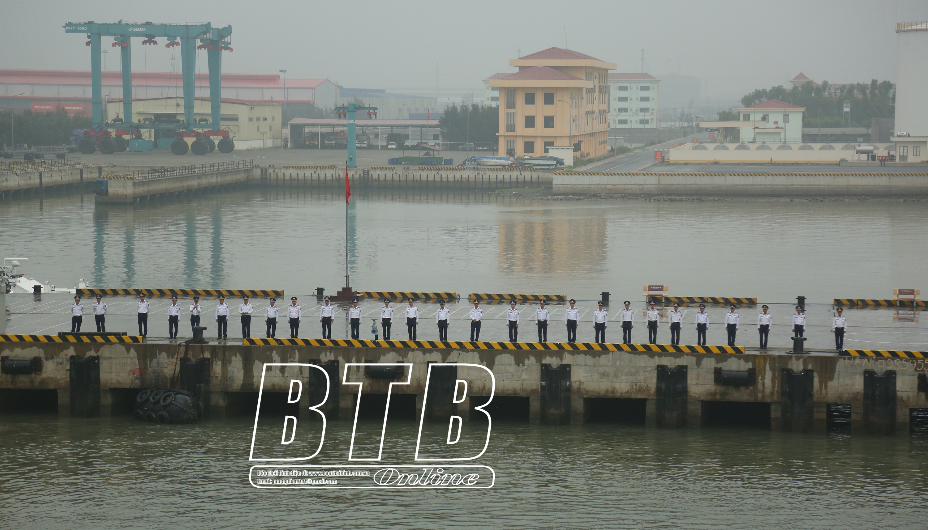 Đoàn công tác tỉnh Thái Bình thực hiện chào cảng.