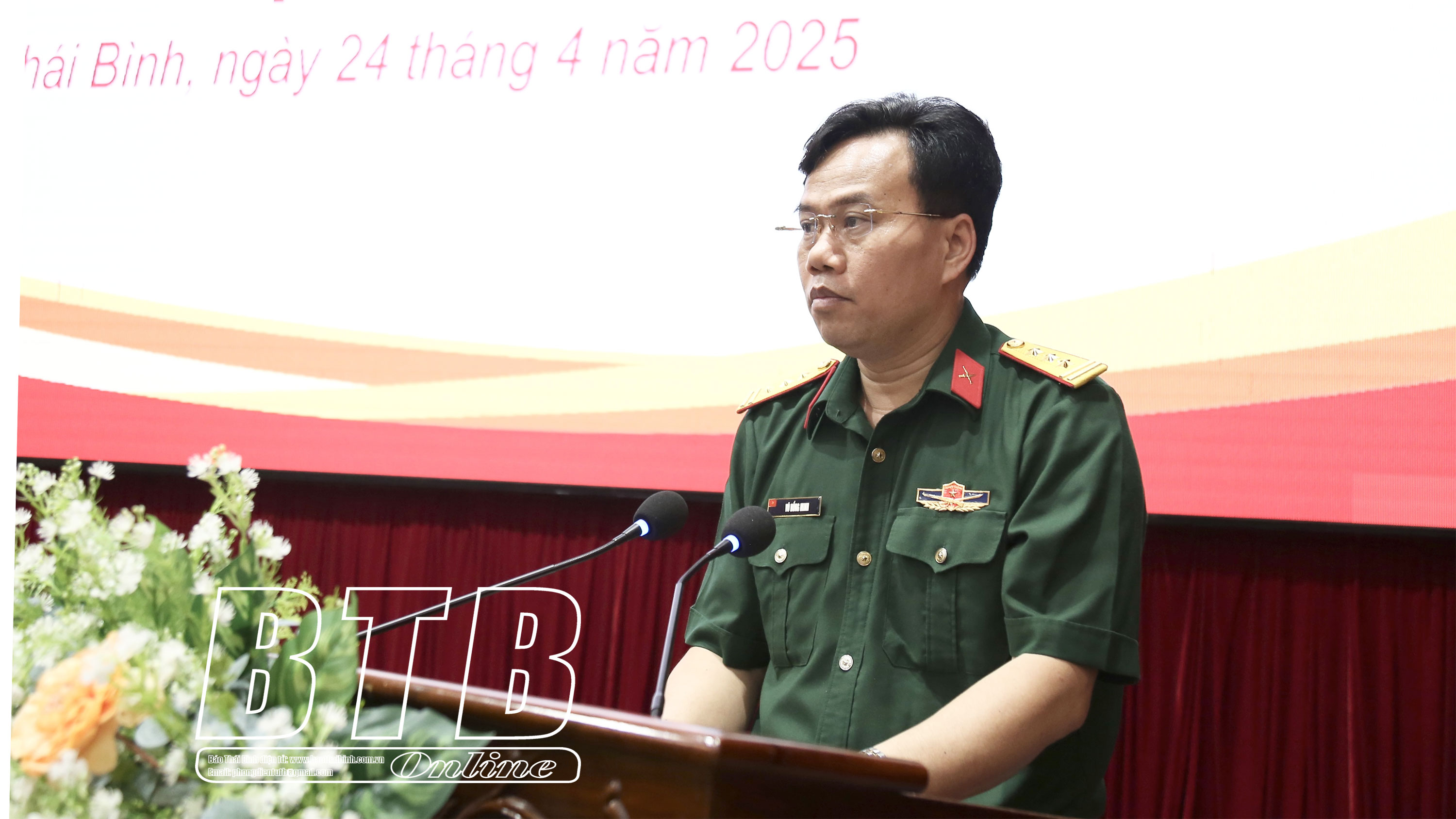 Lãnh đạo Bộ Chỉ huy Quân sự tỉnh phát biểu tại buổi bế mạc kiểm tra kỹ năng nghề.