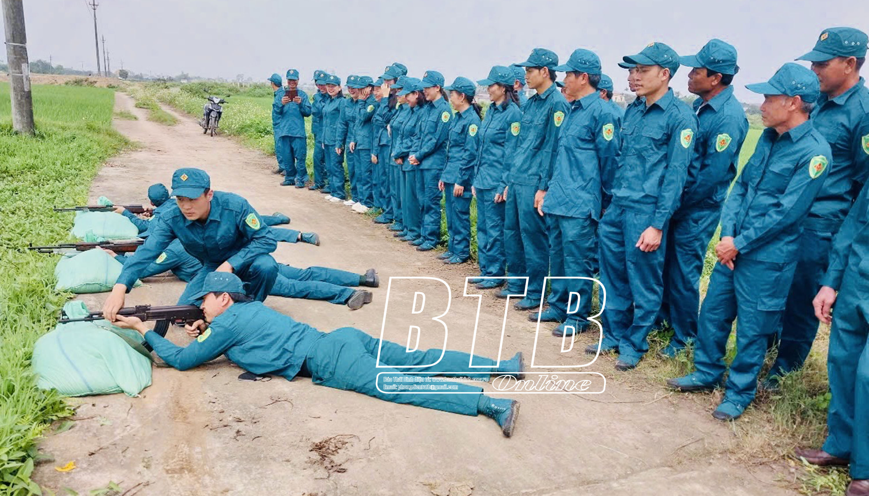 Lực lượng dân quân huyện Hưng Hà tham gia huấn luyện thực hành bắn súng.Thực hành điều lệnh cho lực lượng dân quân huyện Hưng Hà.