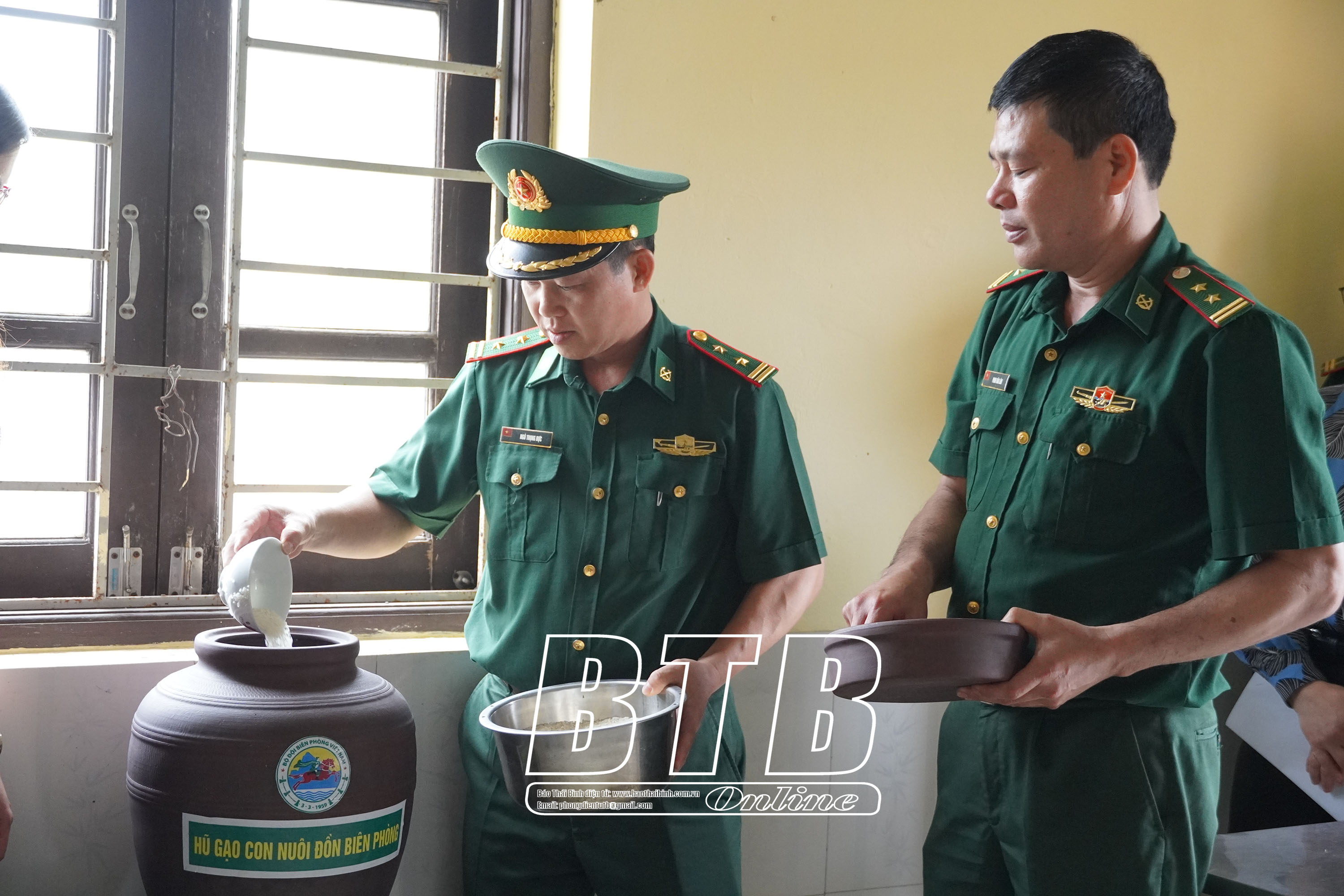 Đồn Biên phòng Trà Lý thực hiện mô hình “Hũ gạo con nuôi Đồn Biên phòng”.