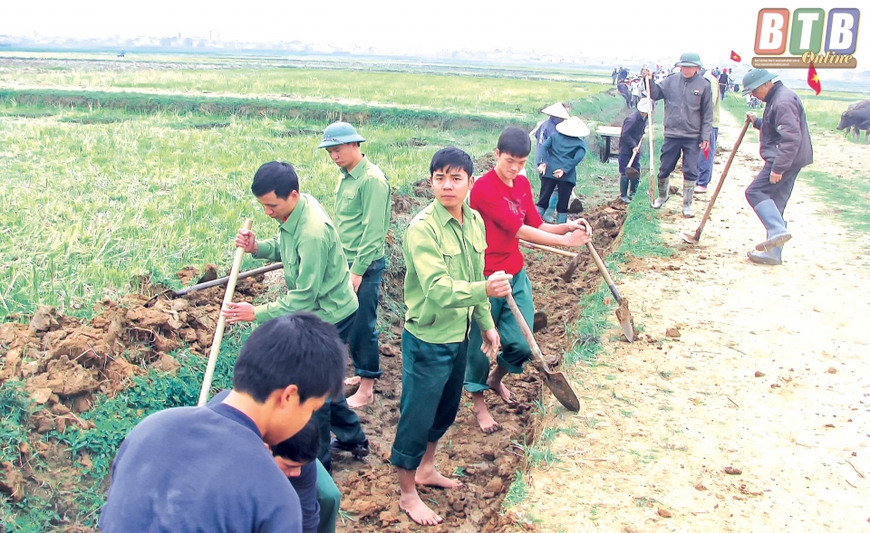 Bộ đội Biên phòng phối hợp với địa phương trên khu vực biên giới biển ra quân làm thủy lợi nội đồng.