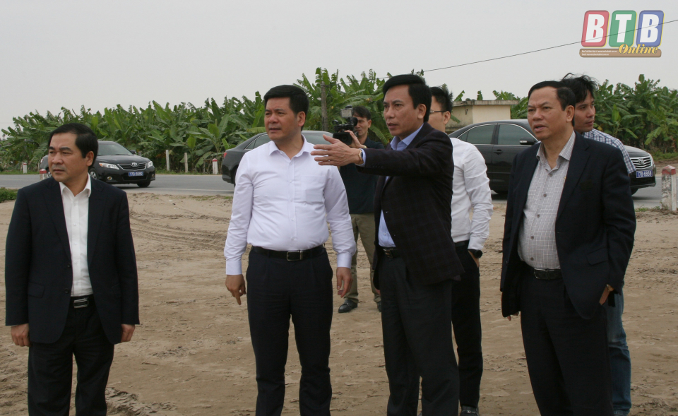 Đồng chí Bí thư Tỉnh ủy, Chủ tịch HĐND tỉnh, Trưởng đoàn đại biểu Quốc hội tỉnh cùng đoàn đã đến kiểm tra, khảo sát địa điểm chuẩn bị cho lễ khởi công tuyến đường bộ ven biển tại xã Thái Thượng (Thái Thụy).