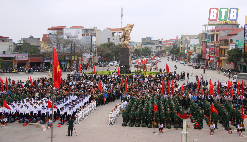 Quang cảnh lễ giao nhận quân tại huyện Tiền Hải.
