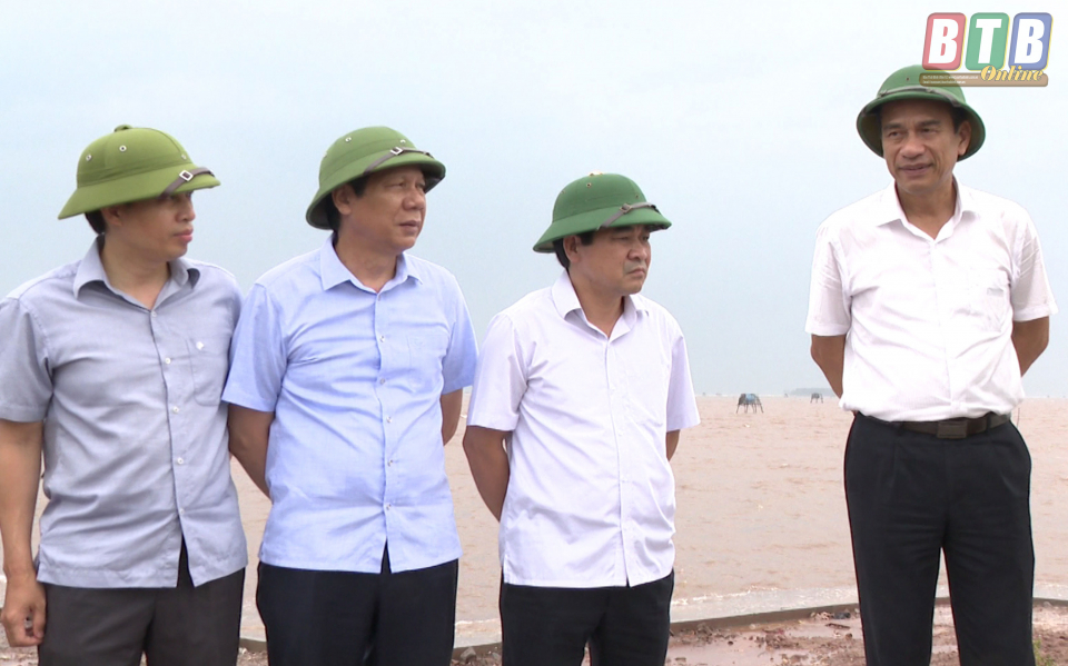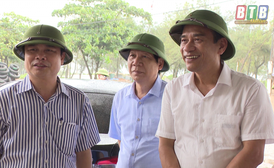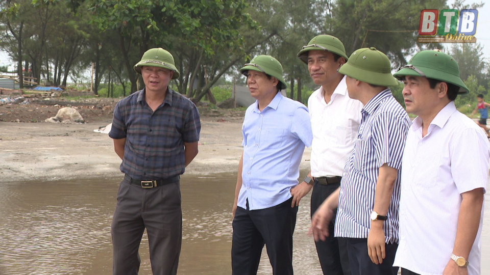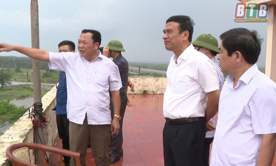 Đồng chí Đặng Trọng Thăng, Phó Bí thư Tỉnh uỷ, Chủ tịch UBND tỉnh kiểm tra công tác phòng chống bão số 2 tại Tiền Hải.