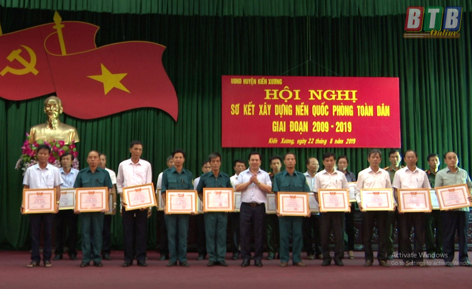 Tại hội nghị, UBND huyện Kiến Xương đã khen thưởng cho 47 tập thể, cá nhân hoàn thành tốt nhiệm vụ trong xây dựng nền quốc phòng toàn dân giai đoạn 2009- 2019.