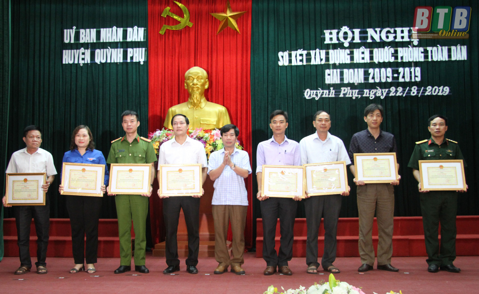 Tại hội nghị, Ban Chỉ huy Quân sự huyện Quỳnh Phụ được nhận bằng khen của Bộ trưởng Bộ Quốc phòng, 20 tập thể và 33 cá nhân được UBND huyện khen thưởng.