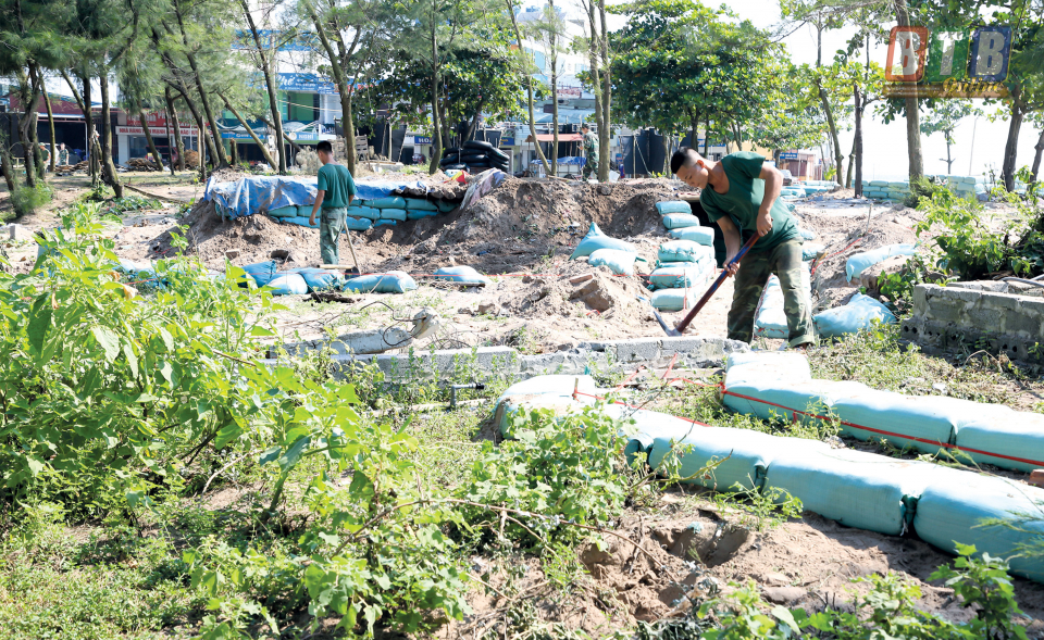 Cán bộ, chiến sĩ Trung đoàn 8, Sư đoàn 395 (Quân khu 3) tham gia xây dựng trận địa phục vụ diễn tập khu vực phòng thủ tỉnh năm 2019. Ảnh: Thành Tâm
