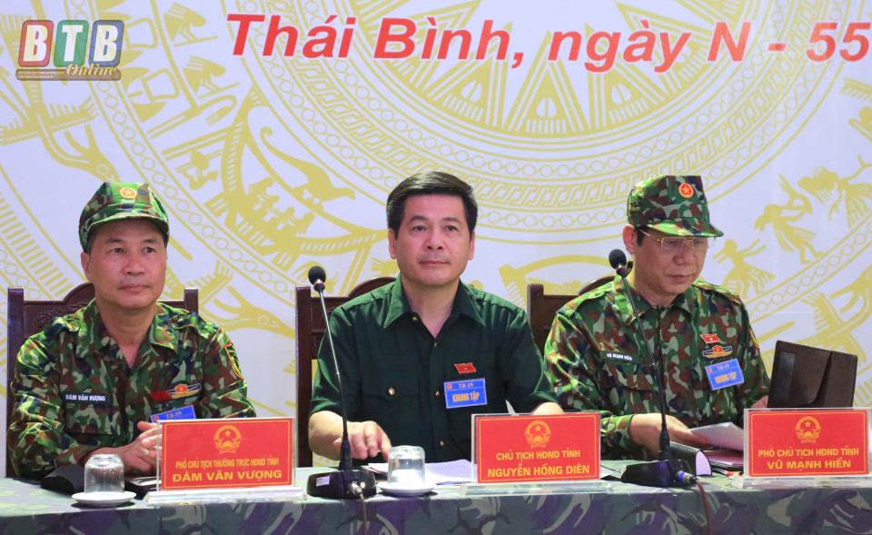 Phát biểu khai mạc diễn tập, đồng chí Nguyễn Hồng Diên, Ủy viên Trung ương Đảng, Bí thư Tỉnh ủy, Chủ tịch HĐND tỉnh, Trưởng ban Chỉ đạo diễn tập KVPT tỉnh khẳng định: Những năm qua, cùng với việc tập trung lãnh đạo, chỉ đạo thực hiện có hiệu quả nhiệm vụ phát triển kinh tế - xã hội, xây dựng Đảng và hệ thống chính trị vững mạnh, Tỉnh ủy, HĐND, UBND tỉnh và Đảng ủy Quân sự tỉnh đã thường xuyên lãnh đạo, chỉ đạo thực hiện tốt nhiệm vụ xây dựng KVPT tỉnh theo chủ trương của Đảng, Nhà nước. Tiềm lực quân sự, quốc phòng trong KVPT tiếp tục được quan tâm đầu tư, thế trận quốc phòng toàn dân gắn với thế trận an ninh nhân dân được tăng cường với những cách làm sáng tạo, hiệu quả, phù hợp với tình hình thực tiễn ở địa phương, đáp ứng với yêu cầu, nhiệm vụ bảo vệ Tổ quốc trong tình hình mới. Các LLVT trong tỉnh đã chủ động, tích cực tham mưu cho cấp ủy, chính quyền chỉ đạo thực hiện tốt các chương trình, kế hoạch bảo đảm an ninh trật tự trên địa bàn, thiết lập các ranh giới để chủ động phòng ngừa, ứng phó có hiệu quả với các tình huống về quốc phòng - an ninh, góp phần quan trọng giữ vững an ninh chính trị, trật tự an toàn xã hội, tạo nhiều thuận lợi cho phát triển kinh tế - xã hội của địa phương…