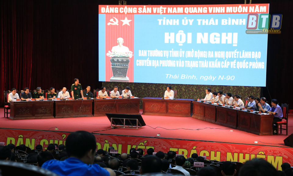 Ngay sau khai mạc diễn tập đã diễn ra hội nghị Ban Thường vụ Tỉnh ủy (mở rộng) ra Nghị quyết lãnh đạo chuyển địa phương vào tình trạng khẩn cấp về quốc phòng dưới sự chủ trì của đồng chí Nguyễn Hồng Diên, Ủy viên Trung ương Đảng, Bí thư Tỉnh ủy, Chủ tịch HĐND tỉnh; hội nghị Ban Chỉ huy tình trạng khẩn cấp về quốc phòng do đồng chí Đặng Trọng Thăng, Phó Bí thư Tỉnh ủy, Chủ tịch UBND tỉnh chủ trì. Hội nghị Đảng ủy Công an tỉnh thông qua Kế hoạch bảo đảm an ninh chính trị, trật tự an toàn xã hội trong trạng thái khẩn cấp về quốc phòng do Đại tá Nguyễn Văn Minh, Ủy viên Ban Thường vụ Tỉnh ủy, Bí thư Đảng ủy, Giám đốc Công an tỉnh chủ trì.
