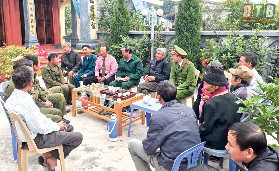 Lực lượng công an và cựu chiến binh phối hợp xây dựng mô hình xã không có ma túy tại xã Hồng Châu (Đông Hưng).