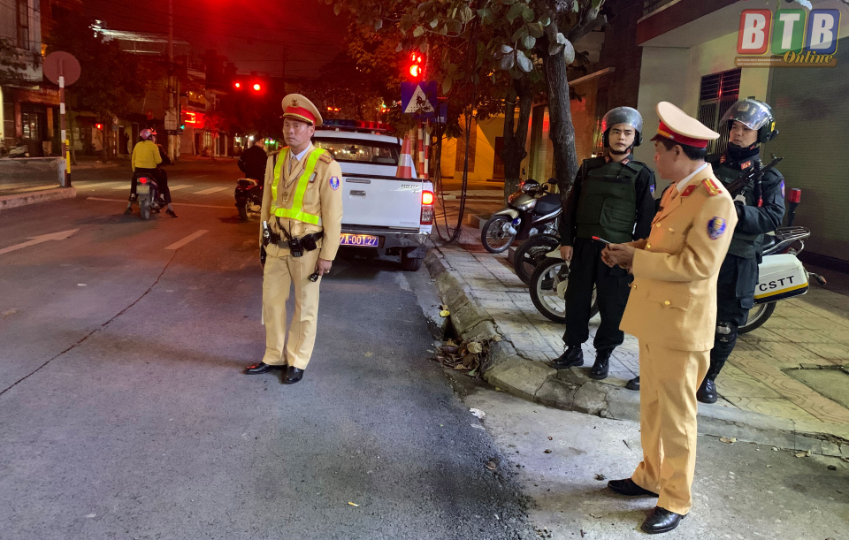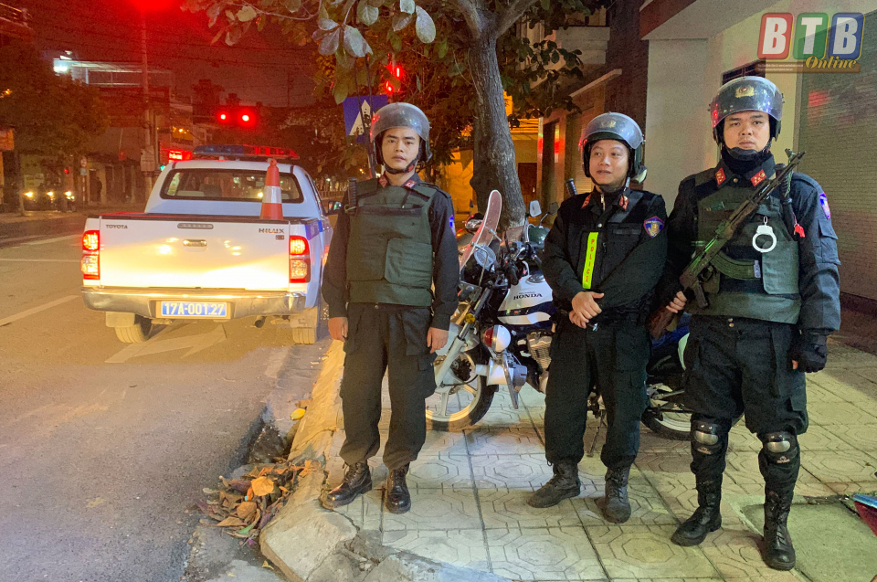 23 giờ 15 phút, tại khu vực cầu Kìm (xã Vũ Chính, thành phố, Thái Bình), Thượng tá Phí Văn Tuyến, Phó Trưởng phòng Cảnh sát giao thông Công an tỉnh đang chỉ huy tổ công tác đặc biệt của Công an tỉnh cho biết: Trong đêm giao thừa Công an tỉnh chỉ đạo 3 tổ công tác đặc biệt tổ chức làm nhiệm vụ tại các địa điểm gồm: tuyến cửa ngõ thị trấn Vũ Thư – cầu Tân Đệ; địa bàn thị trấn Đông Hưng và tuyến 39B từ thành phố đến thị trấn Tiền Hải. Lực lượng của các tổ công tác đặc biệt sẽ tổ chức tuần tra vũ trang khi phát hiện thấy có trường hợp nghi vấn tổ công tác xử lý kịp thời. Theo kế hoạch sau Giao thừa các tổ công tác tiếp tục tuần tra vũ trang đến 4 giờ sáng ngày 25/1 (mồng 1 Tết Canh Tý).