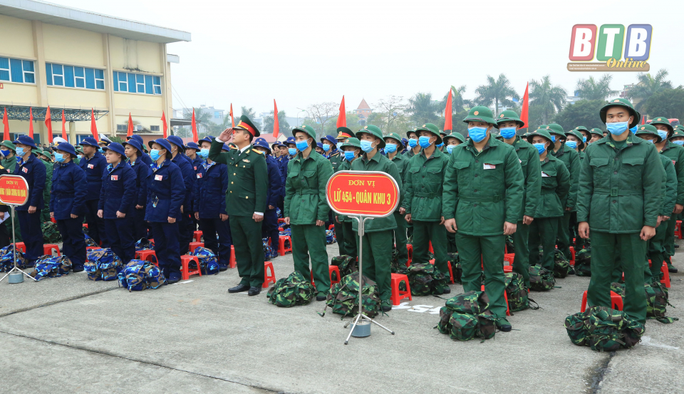 Tân binh Thành phố Thái Binh tại lễ giao nhận quân. Ảnh: Thành Tâm