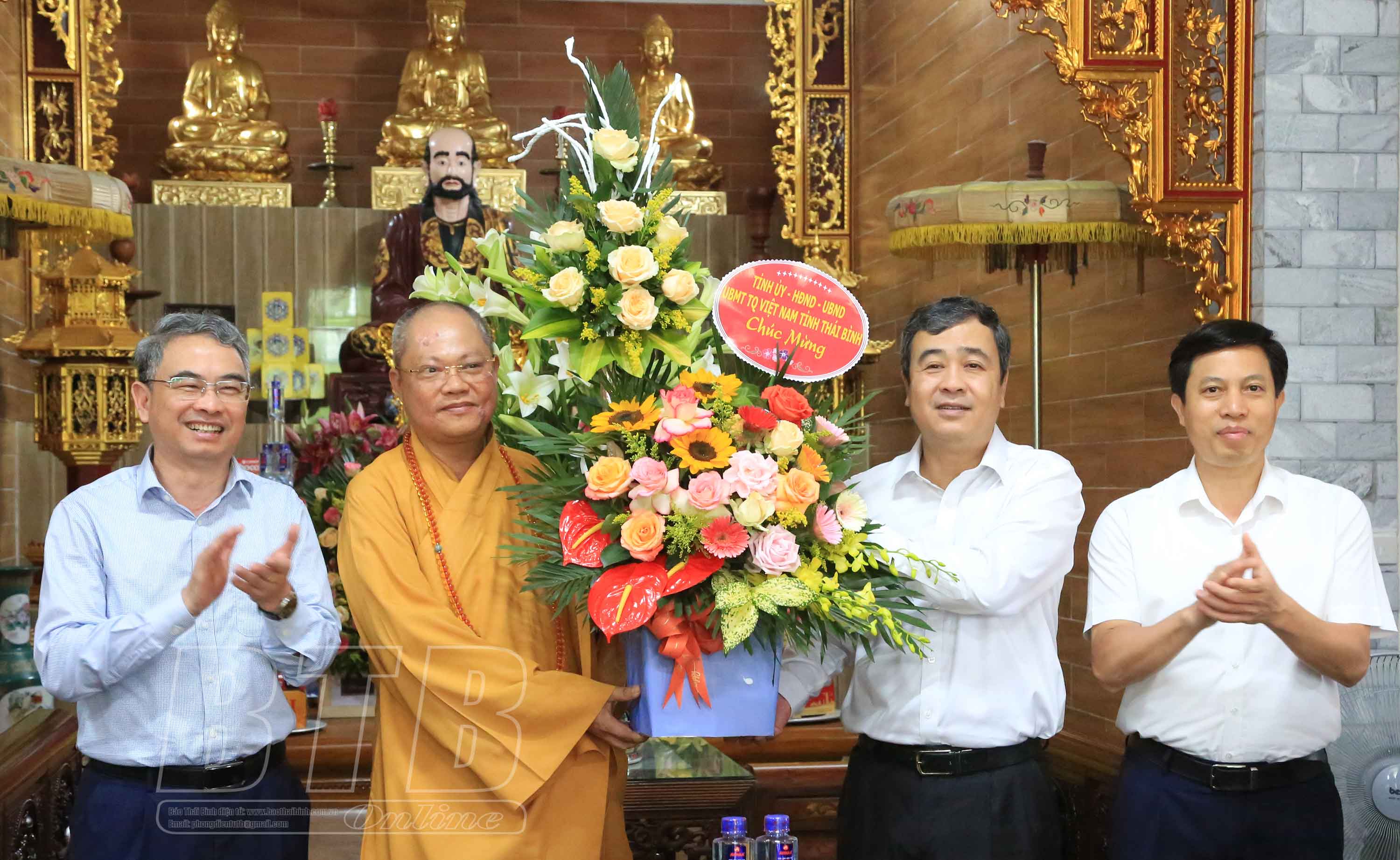Đồng chí Ngô Đông Hải, Ủy viên Ban Chấp hành Trung ương Đảng, Bí thư Tỉnh ủy chúc mừng đại lễ Phật đản tại huyện Kiến Xương
