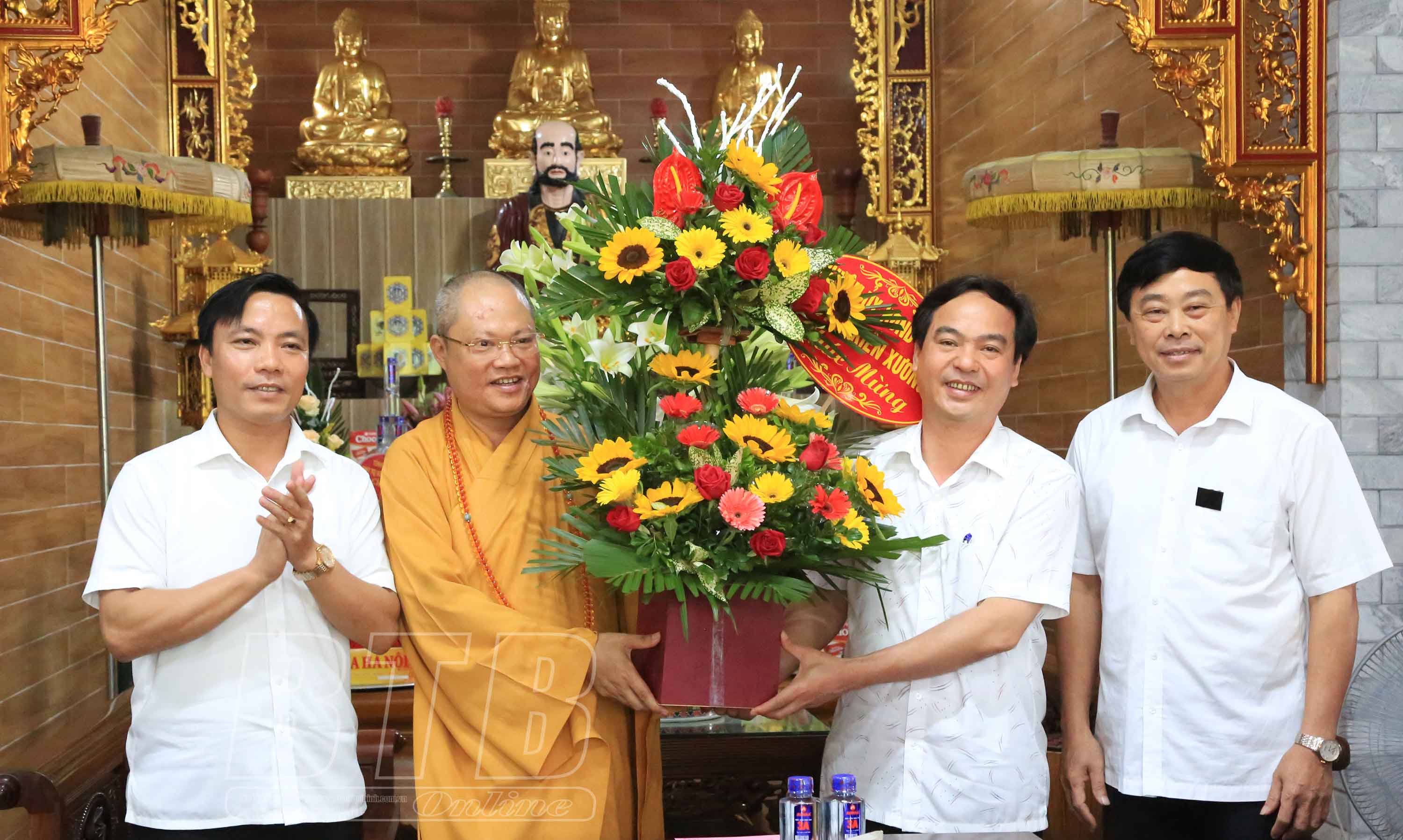 Thay mặt Tỉnh ủy, HĐND, UBND, Ủy ban MTTQ tỉnh, đồng chí Bí thư Tỉnh ủy gửi lời chúc mừng tới Hòa thượng Thích Thanh Dục, Thượng tọa Thích Thanh Vượng và các chức sắc, tăng ni, Phật tử đón mùa Phật đản hoan hỷ, an lành, hạnh phúc. Đồng chí ghi nhận đóng góp của các chức sắc, tăng ni, Phật tử đối với sự nghiệp xây dựng khối đại đoàn kết toàn dân và phát triển kinh tế - xã hội của địa phương thời gian qua. Đồng chí mong muốn các chức sắc, tăng ni, Phật tử tiếp tục phát huy khối đại đoàn kết toàn dân tộc, đồng hành cùng Đảng bộ, chính quyền và nhân dân trong tỉnh thực hiện tốt các mục tiêu, nhiệm vụ Nghị quyết Đại hội Đảng bộ tỉnh lần thứ XX đã đề ra; tổ chức thành công Đại hội đại biểu Phật giáo tỉnh lần thứ IX, nhiệm kỳ 2022 - 2027 sắp tới.