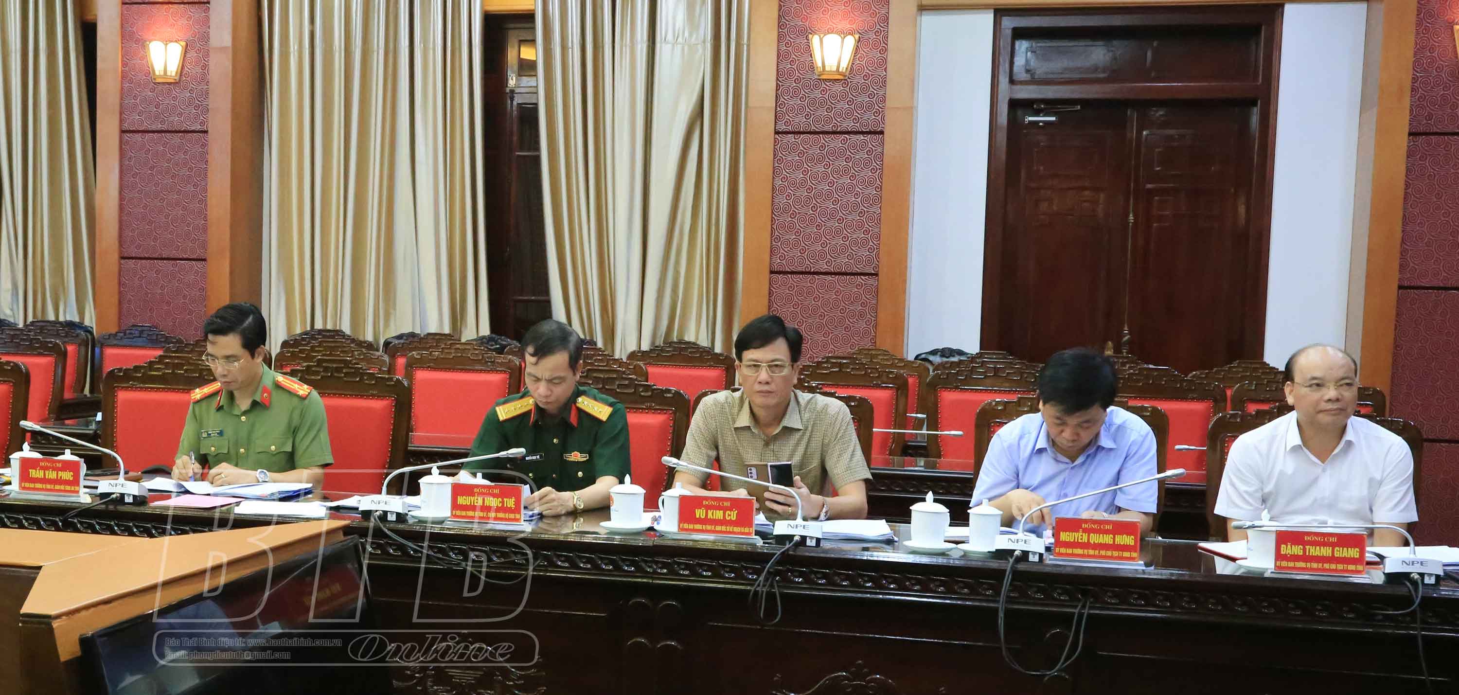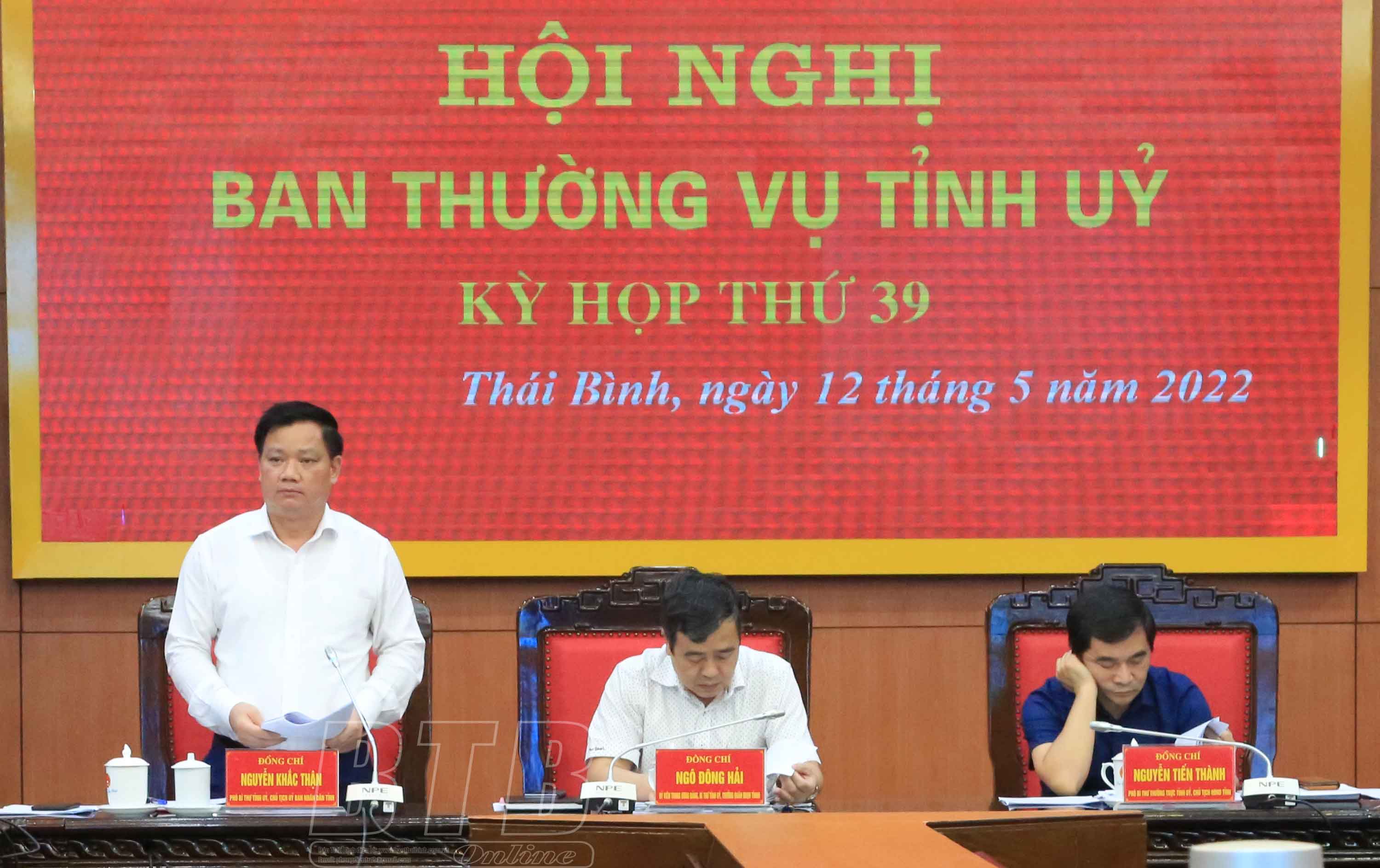 Các đồng chí: Ngô Đông Hải, Ủy viên Ban Chấp hành Trung ương Đảng, Bí thư Tỉnh ủy; Nguyễn Tiến Thành, Phó Bí thư thường trực Tỉnh ủy, Chủ tịch HĐND tỉnh; Nguyễn Khắc Thận, Phó Bí thư Tỉnh ủy, Chủ tịch UBND tỉnh chủ trì hội nghị. Dự hội nghị có các đồng chí Ủy viên Ban Thường vụ Tỉnh ủy.
