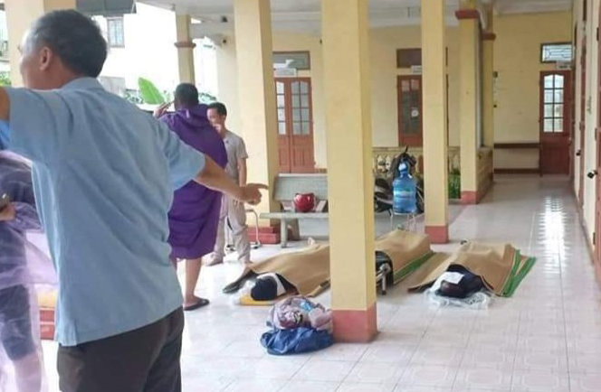 Các nạn nhân tử vong do sét đánh được đưa vào trạm y tế xã Thụy Thanh (ảnh do xã cung cấp).