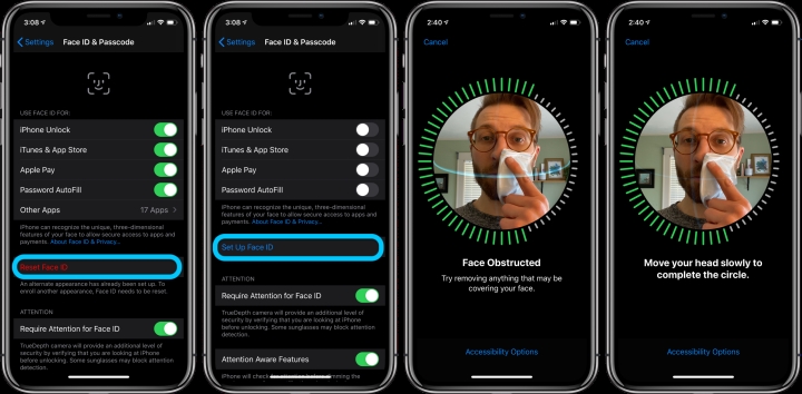 Reset lại Face ID có sẵn và tiến hành thiết lập Face ID lại từ đầu như bình thường
