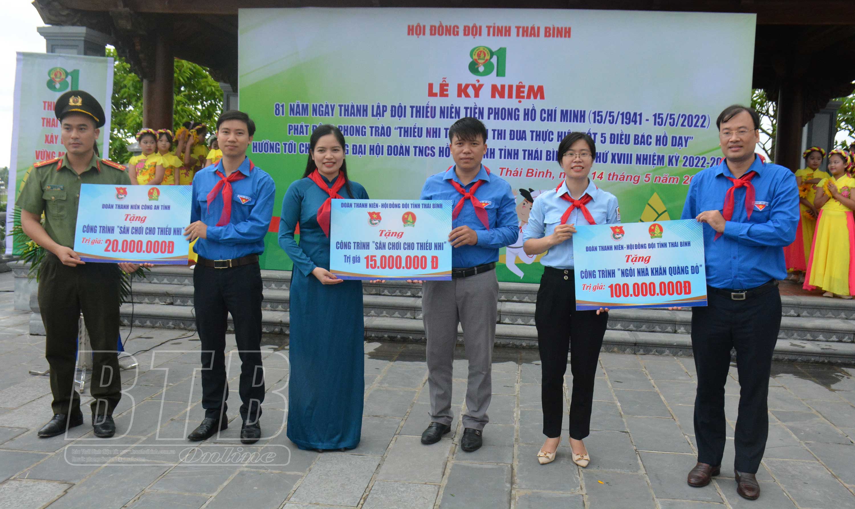 Nhân dịp này, các em nhi đồng tiêu biểu được kết nạp vào Đội Thiếu niên tiền phong Hồ Chí Minh; Hội đồng Đội tỉnh trao giải liên hoan các đội tuyên truyền măng non “Thiếu nhi Thái Bình thi đua làm theo 5 điều Bác Hồ dạy”, phát động phong trào “Thiếu nhi Thái Bình thực hiện tốt 5 điều Bác Hồ dạy” chào mừng Đại hội Đoàn TNCS Hồ Chí Minh tỉnh nhiệm kỳ 2022-2027; Tỉnh đoàn – Hội đồng Đội tỉnh và Đoàn Thanh niên Công an tỉnh trao các công trình măng non có tổng trị giá 135 triệu đồng cho hội đồng đội các huyện: Vũ Thư, Kiến Xương, Hưng Hà; các em đội viên và đại biểu cũng đã xem phim tư liệu Những giây phút cuối đời của Chủ tịch Hồ Chí Minh.