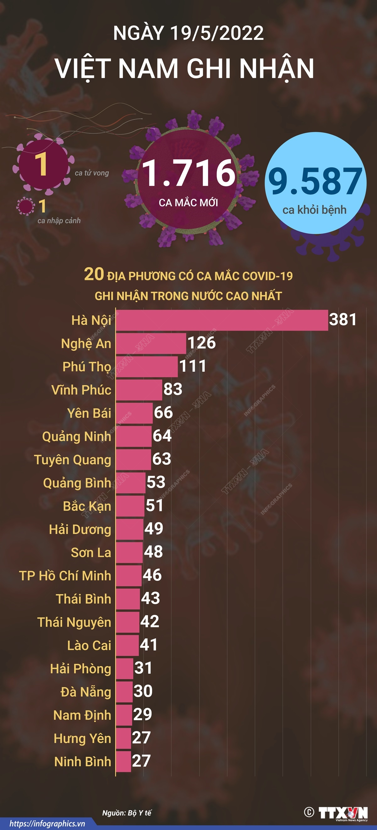 Ngày 19/5, cả nước ghi nhận 1.716 ca mắc mới Covid-19, 1 ca tử vong