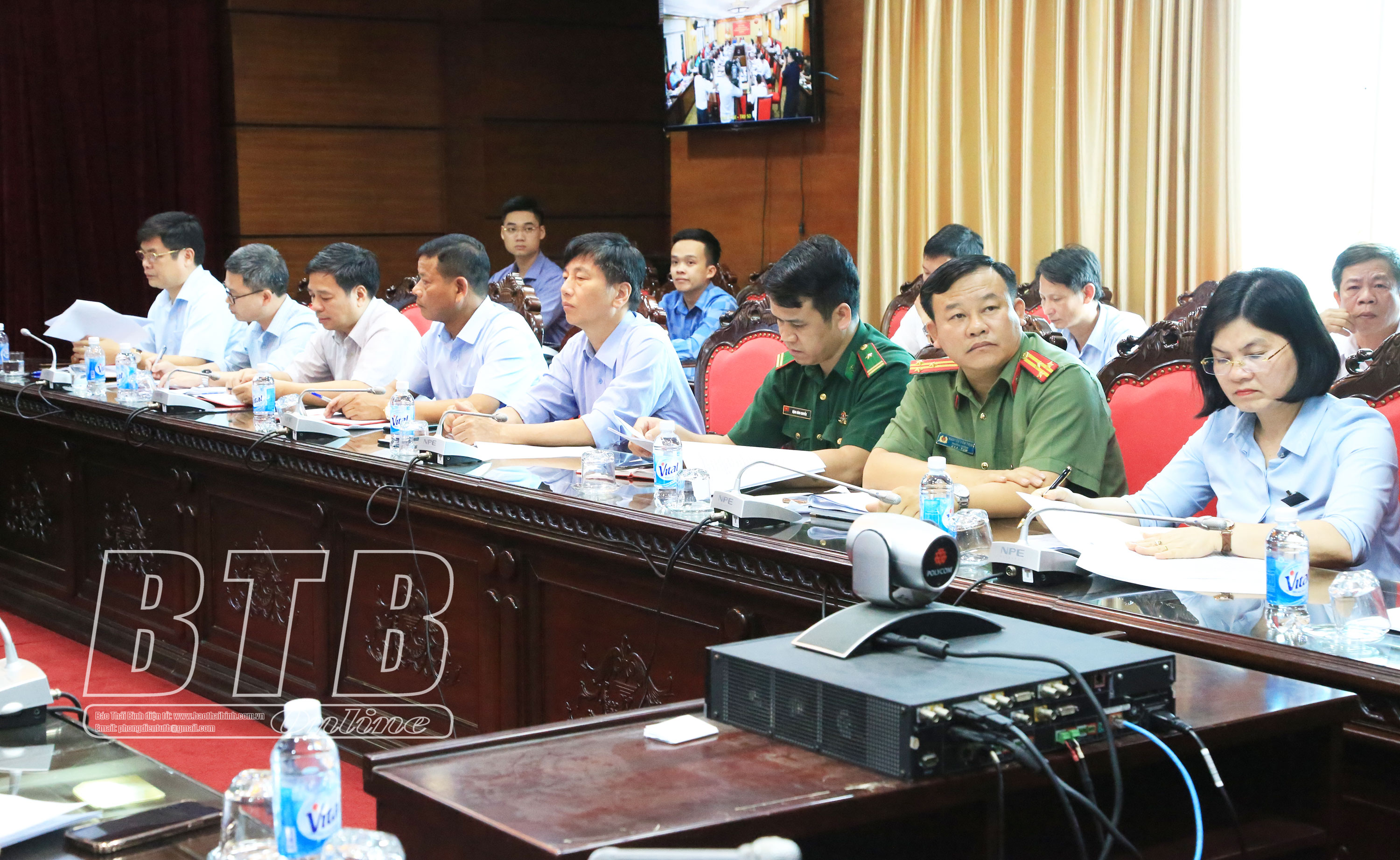 Các đồng chí: Ngô Đông Hải, Ủy viên Ban Chấp hành Trung ương Đảng, Bí thư Tỉnh ủy; Phạm Văn Tuân, Ủy viên Ban Thường vụ, Trưởng ban Tổ chức Tỉnh ủy và đại biểu dự hội nghị tại điểm cầu Thái Bình.