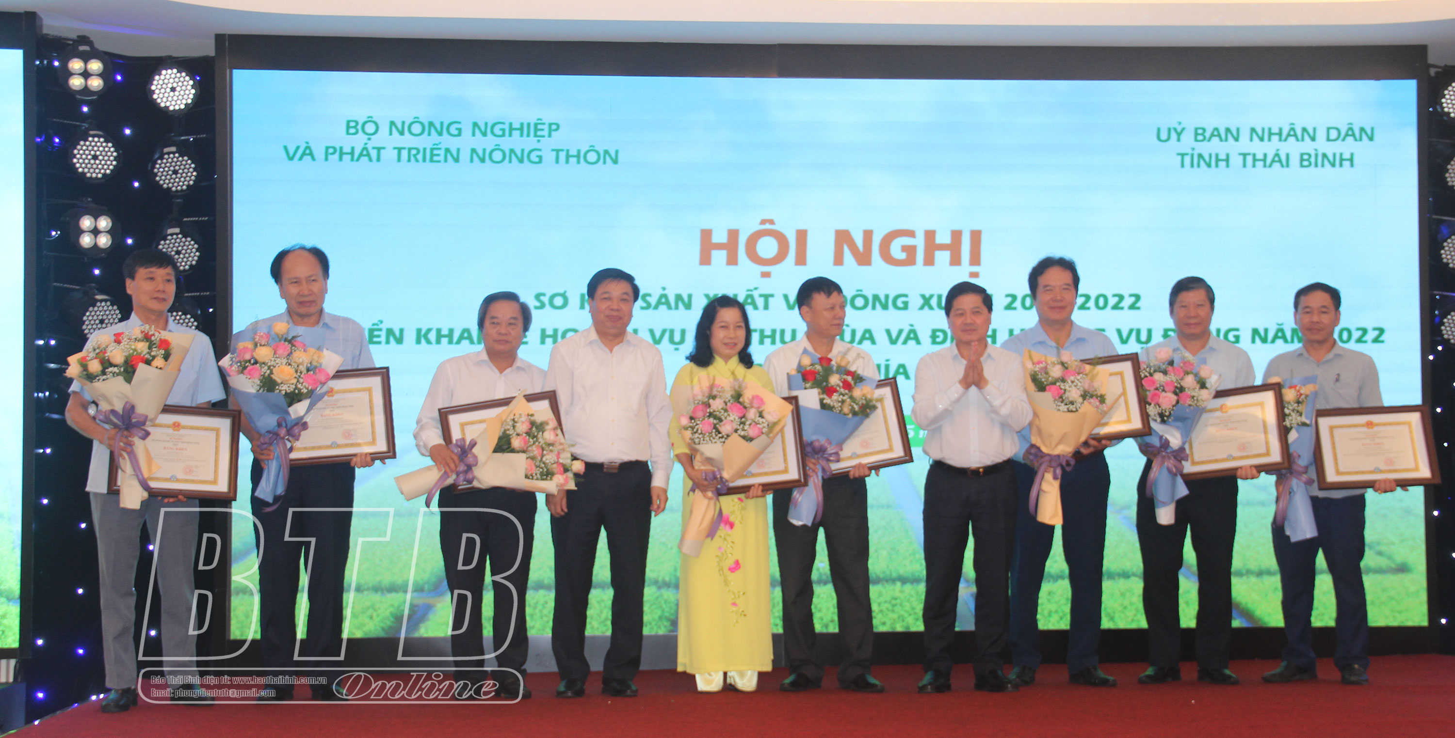 Sáng ngày 27/5, tại Thái Bình, Bộ Nông nghiệp và Phát triển nông thôn phối hợp với UBND tỉnh tổ chức hội nghị sơ kết sản xuất vụ đông xuân năm 2021 – 2022, triển khai kế hoạch sản xuất vụ hè thu, vụ mùa và định hướng vụ đông năm 2022 các tỉnh phía Bắc. Dự hội nghị có các đồng chí: Lê Quốc Doanh, Thứ trưởng Bộ Nông nghiệp và Phát triển nông thôn; Nguyễn Quang Hưng, Ủy viên Ban Thường vụ Tỉnh ủy, Phó Chủ tịch thường trực UBND tỉnh.