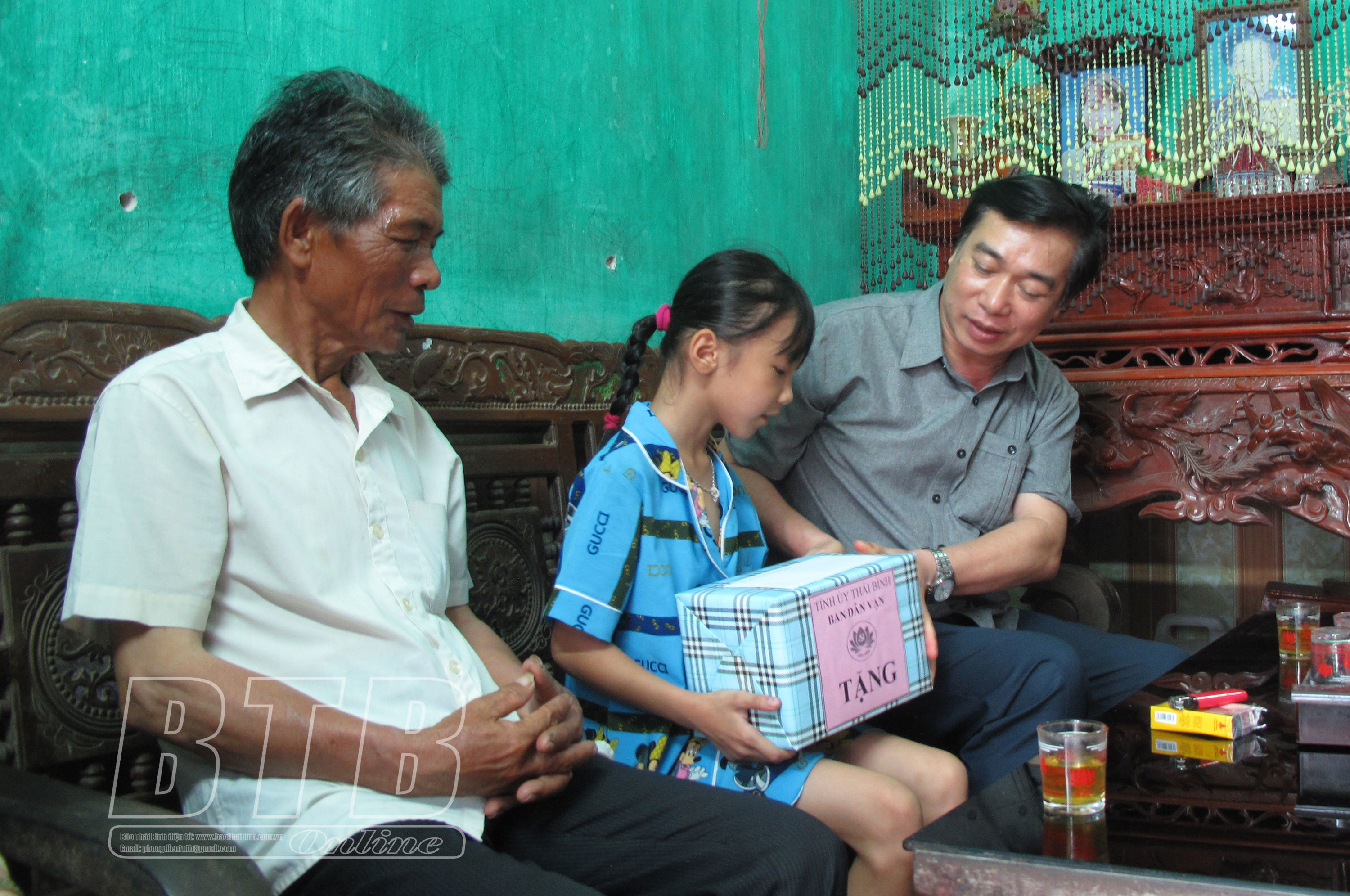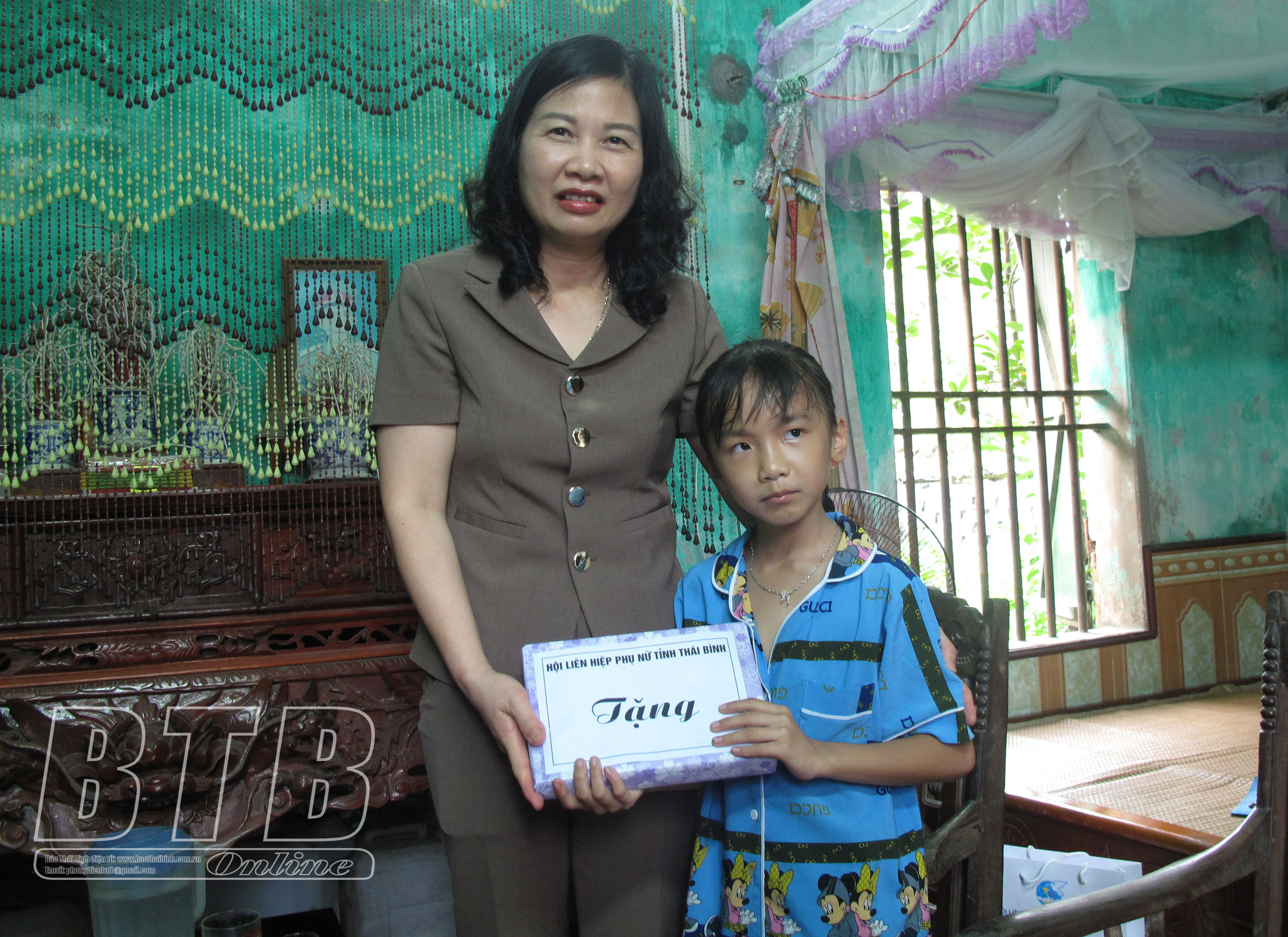 Đồng chí Trưởng ban Dân vận Tỉnh ủy, Chủ tịch Ủy ban MTTQ tỉnh cùng lãnh đạo Hội LHPN tỉnh, Hội LHPN thành phố Thái Bình đã đến thăm, tặng quà, động viên cháu Bùi Văn Tuấn, 7 tuổi, tổ 1, phường Kỳ Bá và cháu Bùi Tú Hạnh, thôn Nguyễn Du, xã Vũ Đông, thành phố Thái Bình là những cháu hiện đang được Hội LHPN phường Kỳ Bá và Hội LHPN thành phố Thái Bình nhận đỡ đầu.