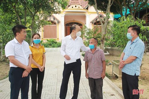 Lãnh đạo huyện Nghi Xuân biểu dương gia đình ông Trần Văn Long đã tích cực trong phong trào hiến đất.