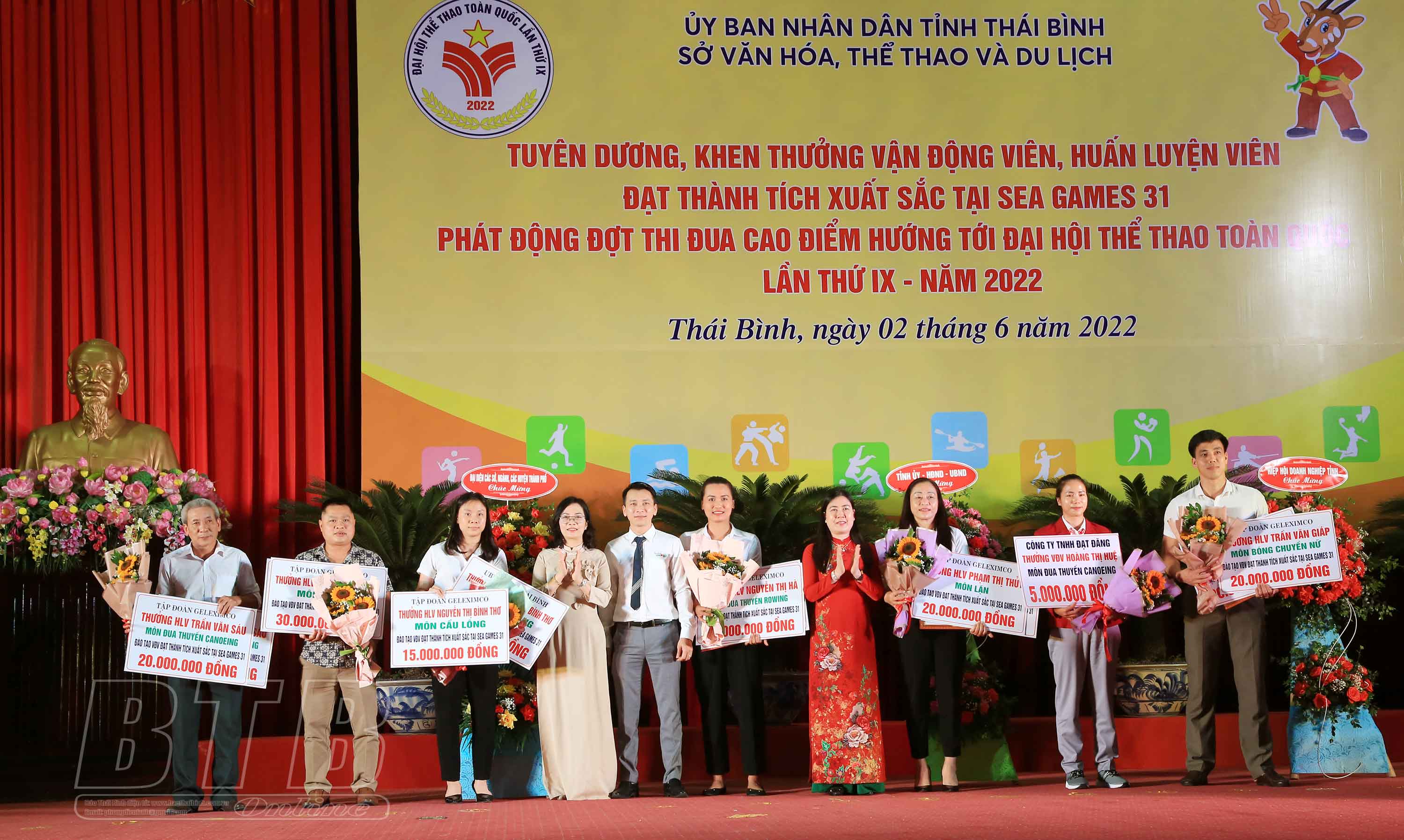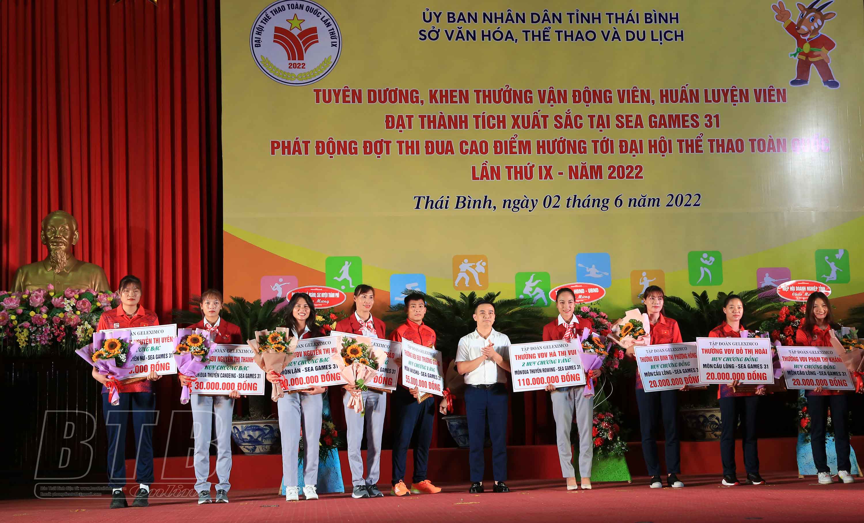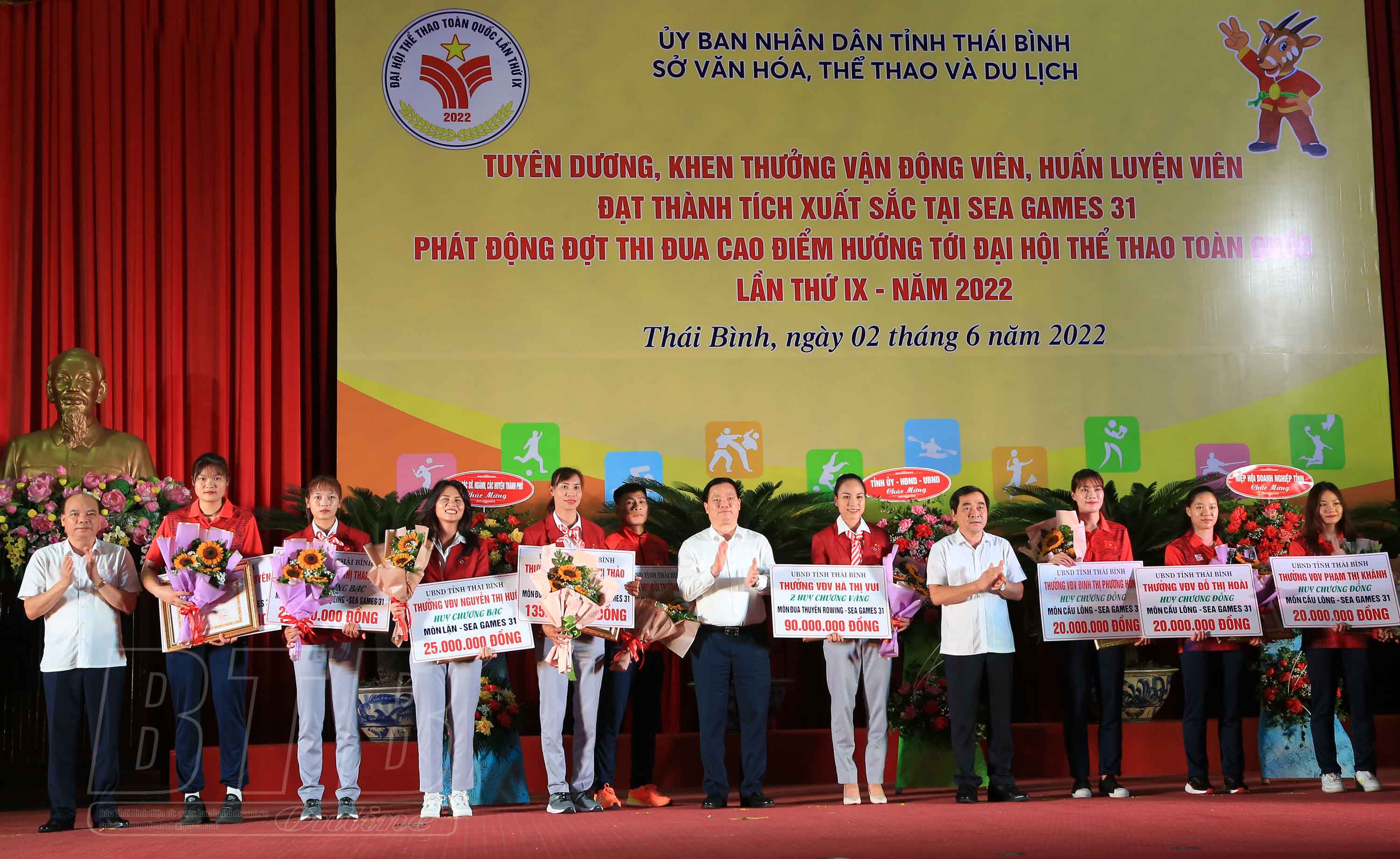 Sáng ngày 2/6, Sở Văn hóa, Thể thao và Du lịch tổ chức tuyên dương, khen thưởng các vận động viên (VĐV), huấn luyện viên (HLV) tỉnh Thái Bình đạt thành tích tại SEA Games 31 và phát động phong trào thi đua hướng tới Đại hội Thể thao toàn quốc lần thứ 9 năm 2022.