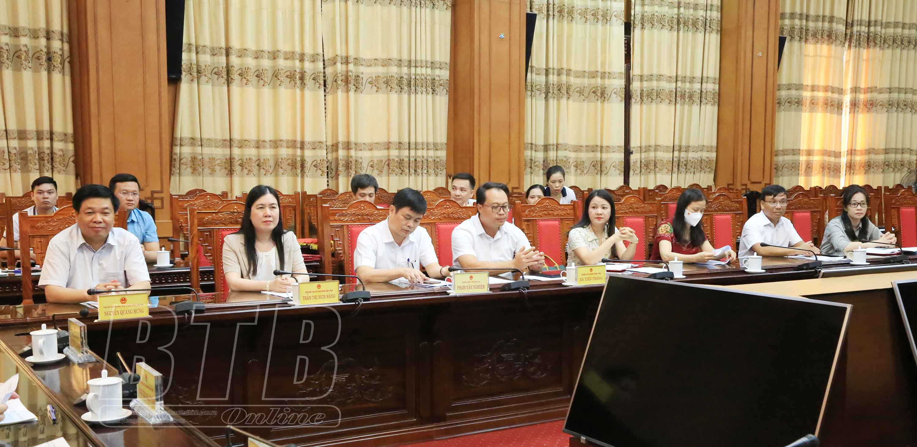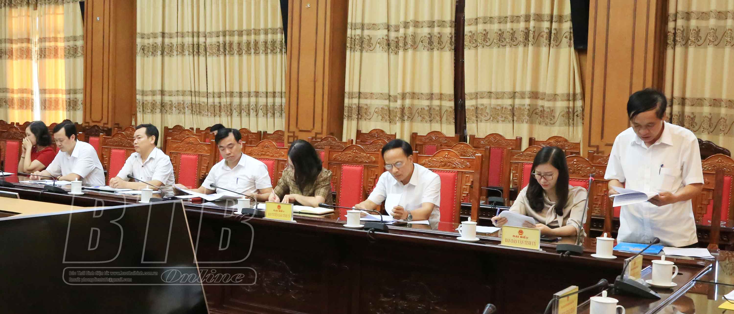 Các đồng chí: Nguyễn Khắc Thận, Phó Bí thư Tỉnh ủy, Bí thư Ban Cán sự đảng UBND tỉnh, Chủ tịch UBND tỉnh; Phạm Đồng Thụy, Ủy viên Ban Thường vụ, Trưởng ban Tuyên giáo Tỉnh ủy; Nguyễn Văn Giang, Ủy viên Ban Thường vụ, Trưởng ban Dân vận Tỉnh ủy chủ trì hội nghị.