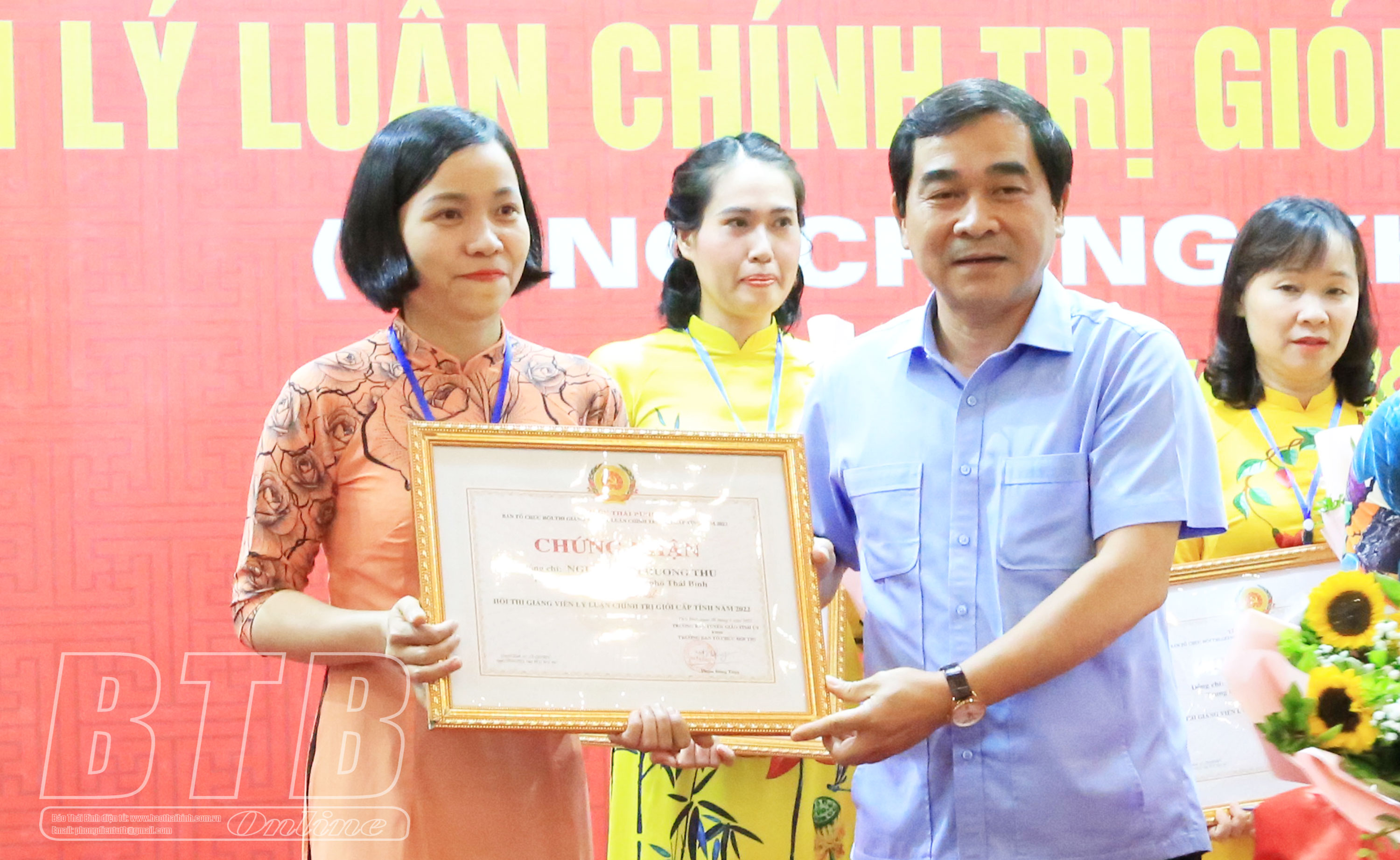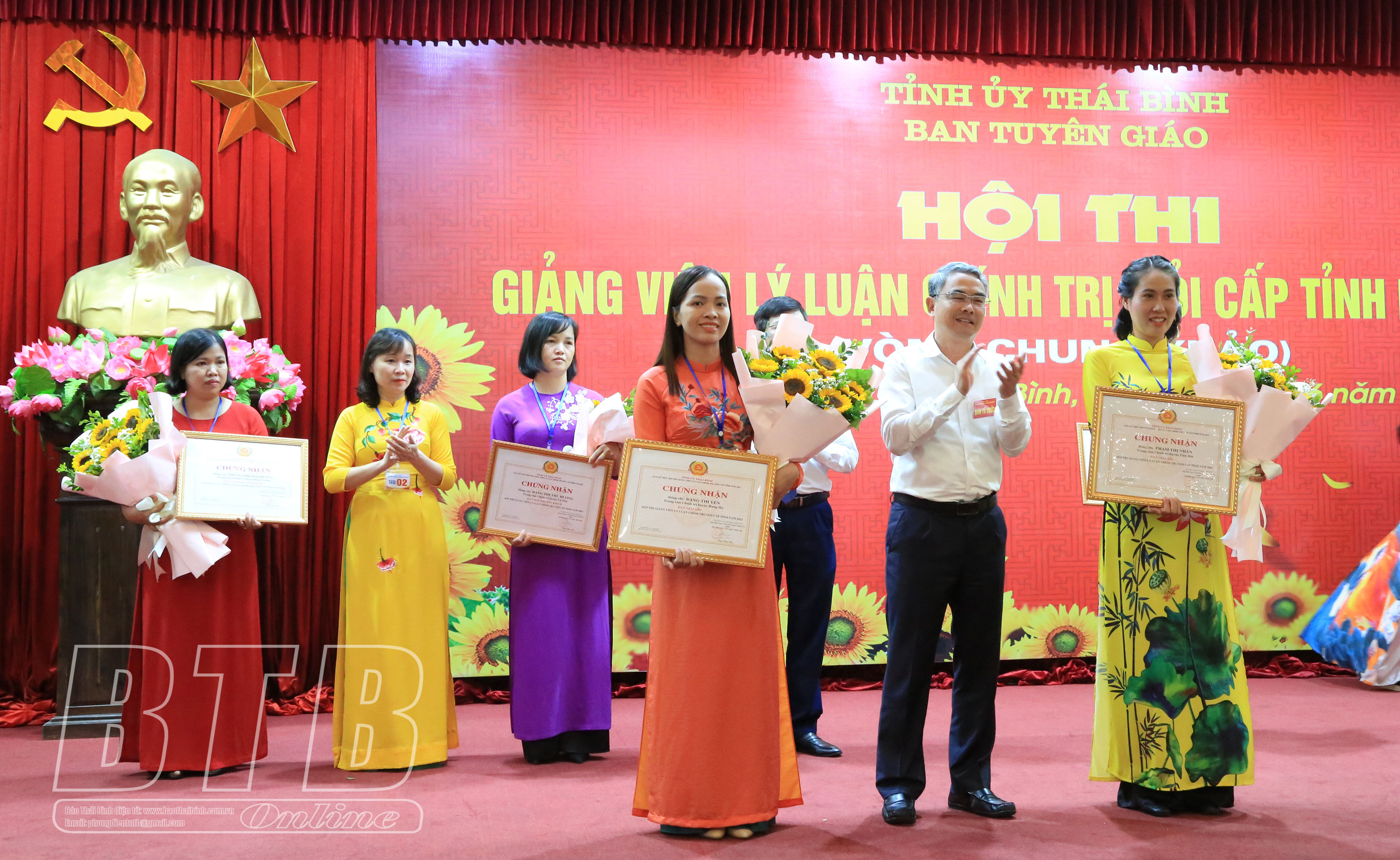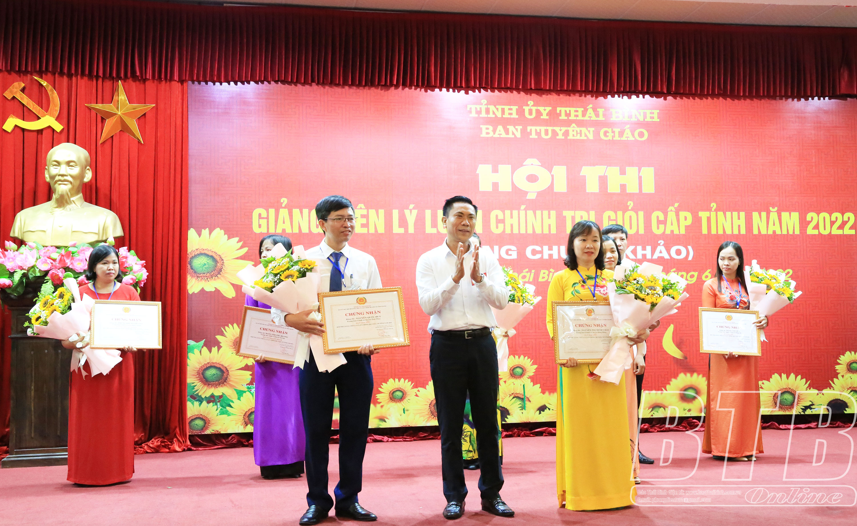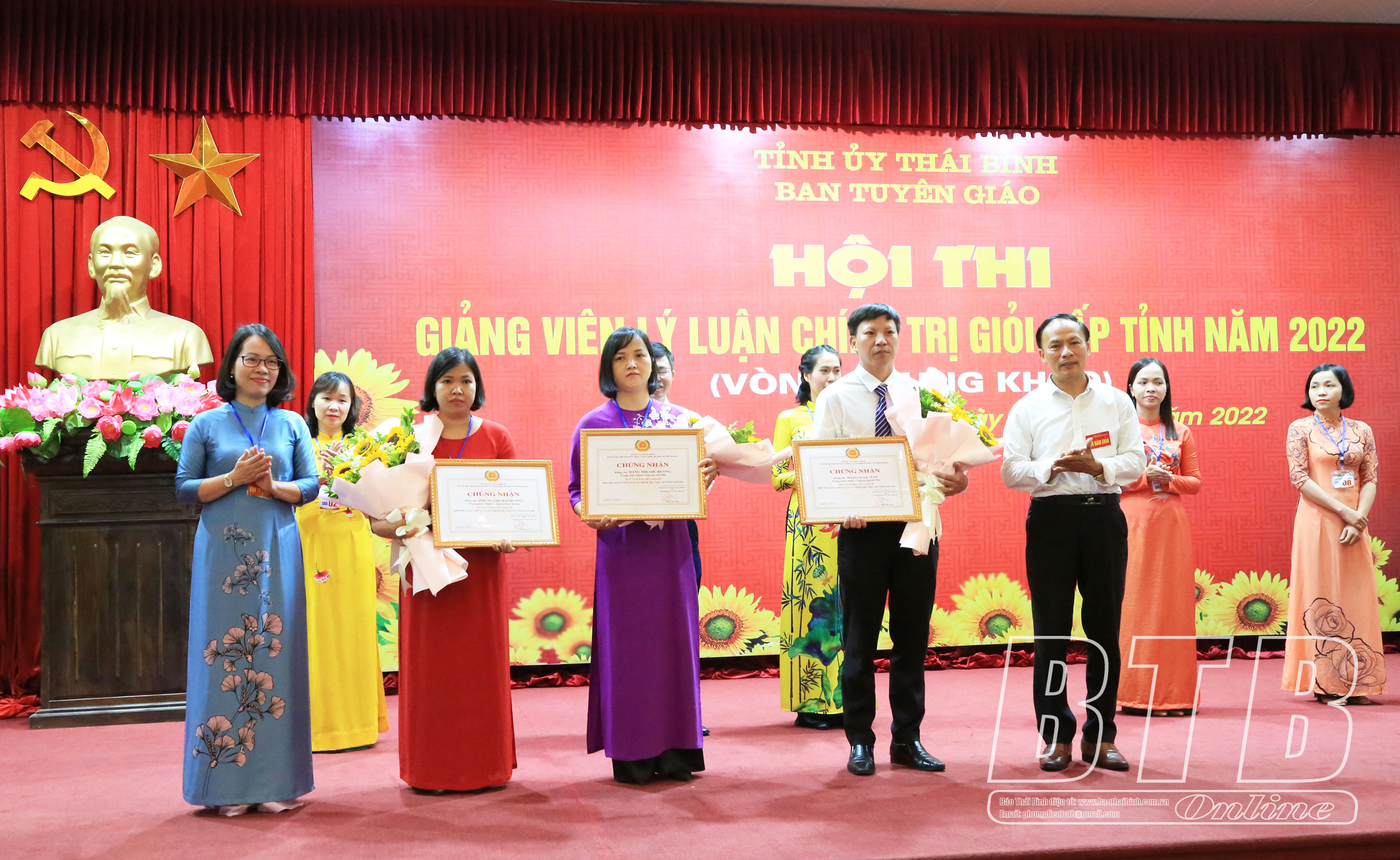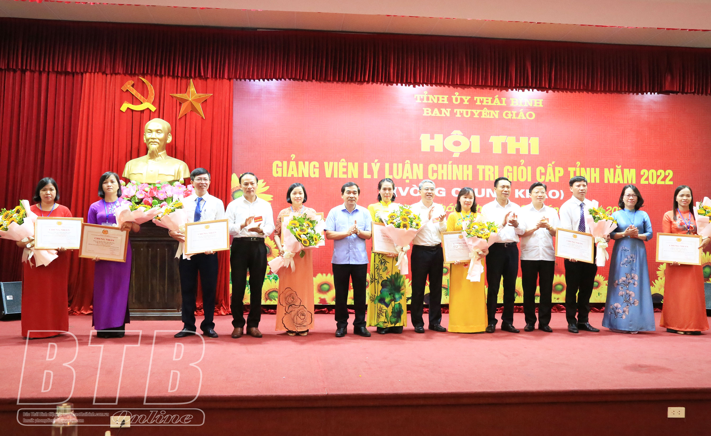 Ban Tổ chức hội thi đã trao 1 giải nhất cho thí sinh Nguyễn Thị Hương Thu, Trung tâm chính trị thành phố Thái Bình; 2 giải nhì cho thí sinh: Nguyễn Quốc Huy, Trung tâm chính trị huyện Thái Thụy và Nguyễn Thị Minh Châu, Trung tâm chính trị huyện Đông Hưng. Ngoài ra, Ban Tổ chức hội thi còn trao 2 giải ba và 3 giải khuyến khích cho các thí sinh tham dự hội thi giảng viên LLCT giỏi cấp tỉnh năm 2022.
