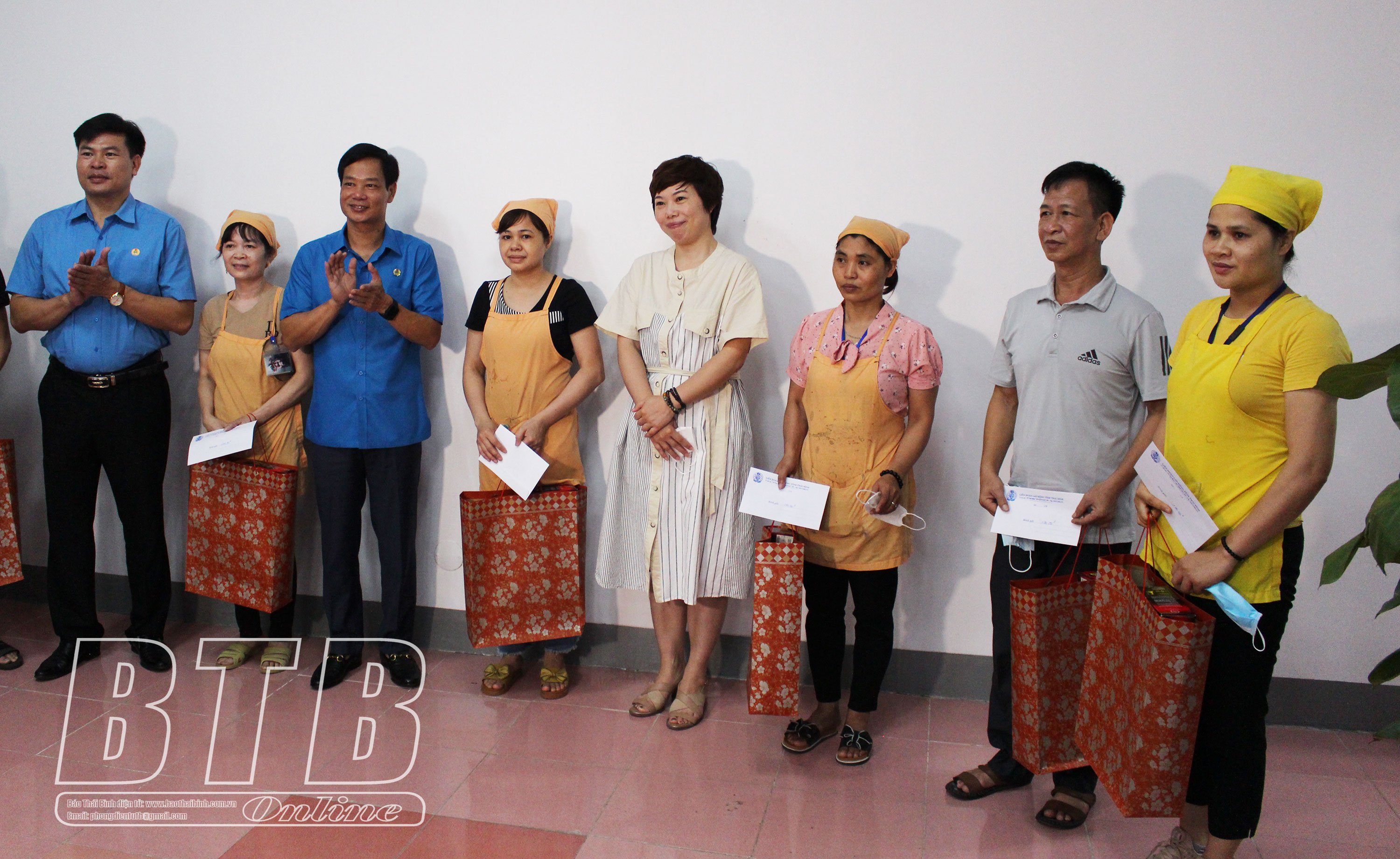 Lãnh đạo Liên đoàn Lao động tỉnh tặng quà công nhân Công ty TNHH Công nghiệp Talian Việt Nam.