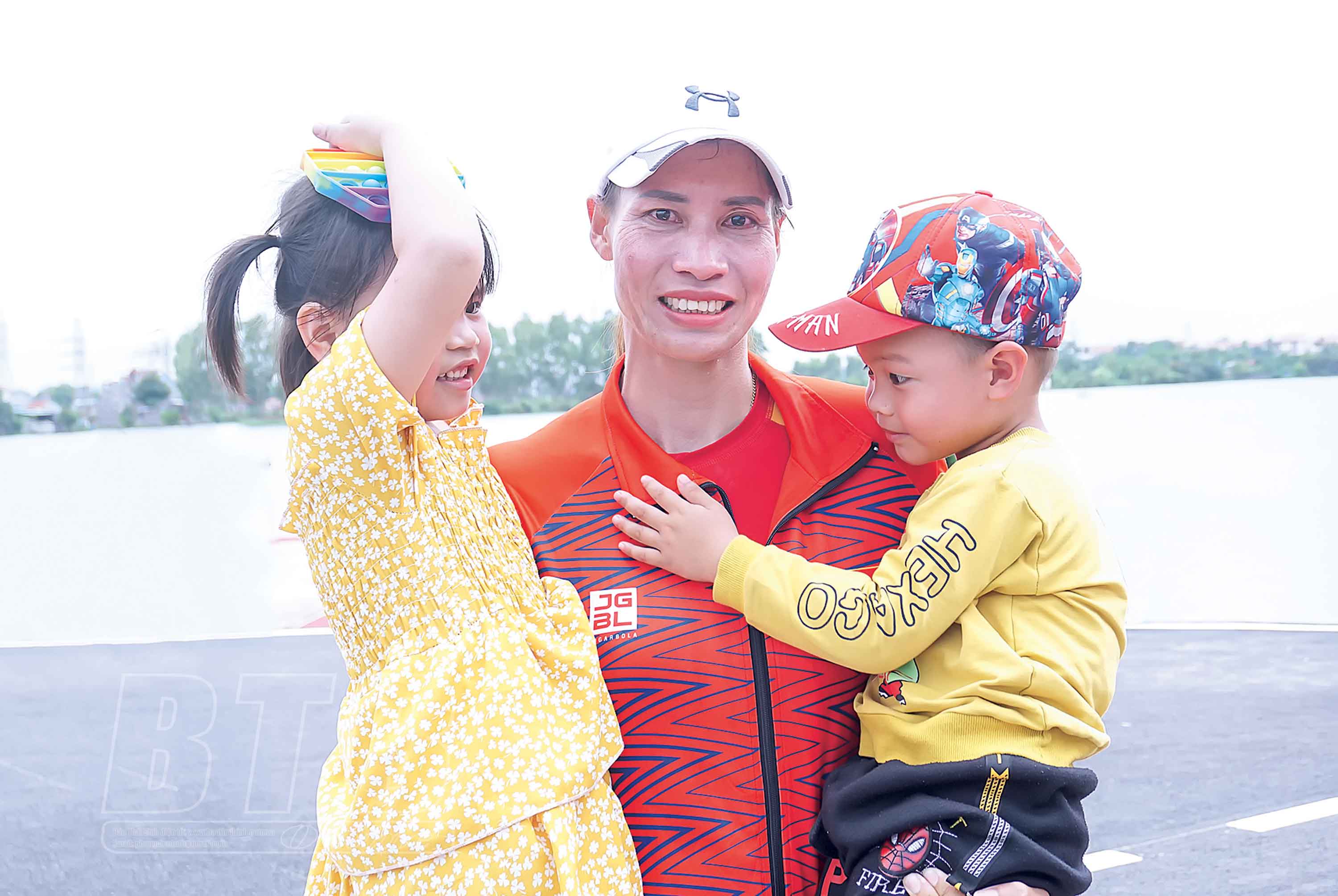 Vận động viên Phạm Thị Thảo cùng hai con sau chiến thắng tại SEA Games 31.