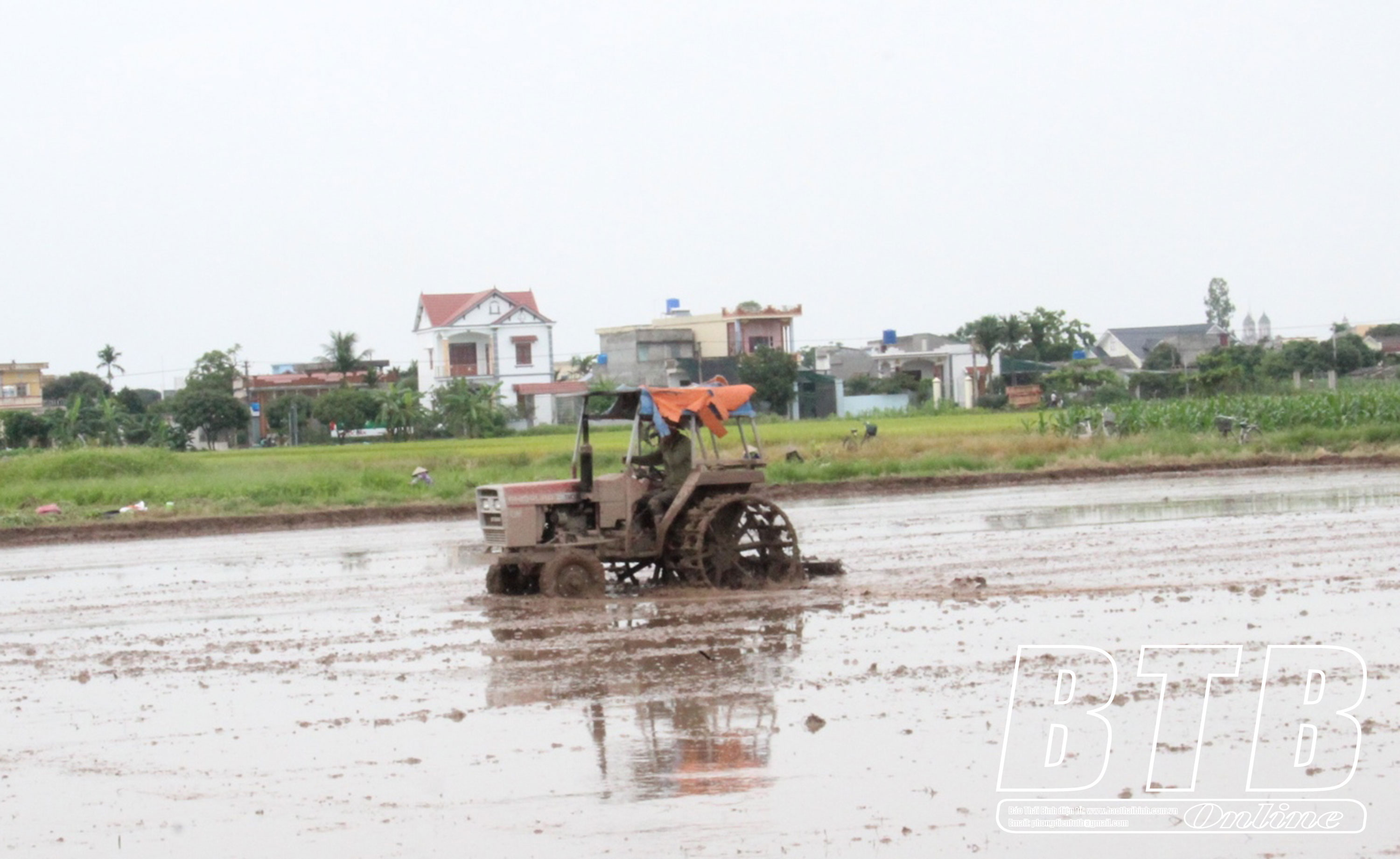 Nông dân Điệp Nông (Hưng Hà) làm đất gieo mạ sẵn sàng cho sản xuất vụ mùa.