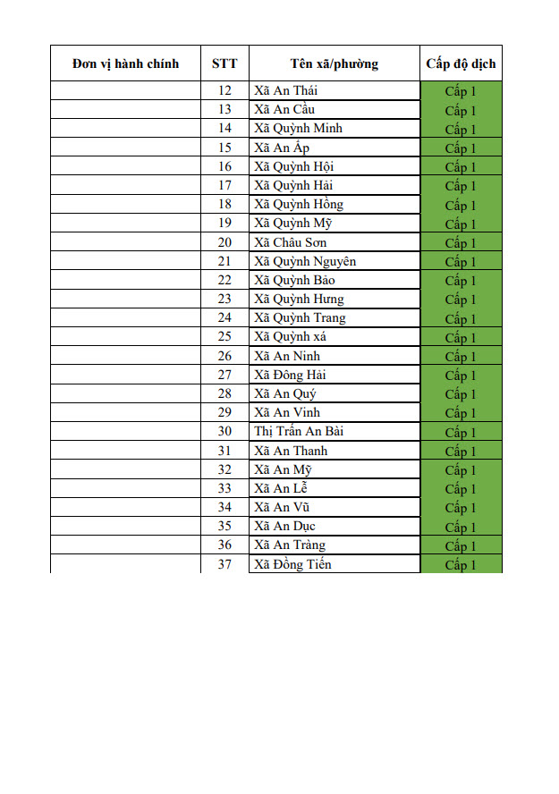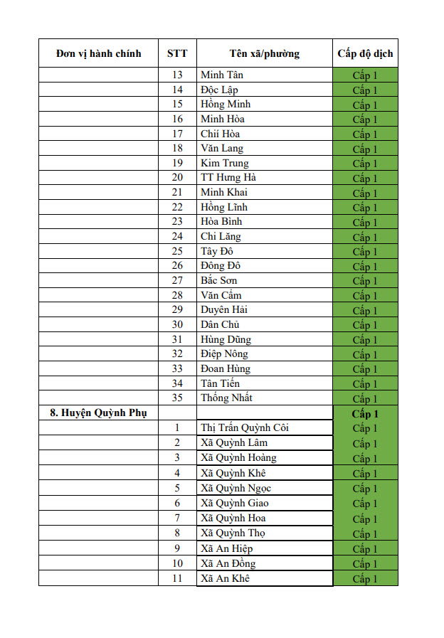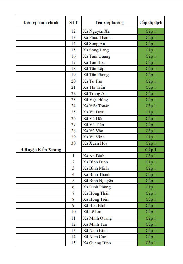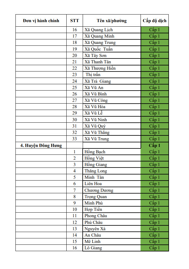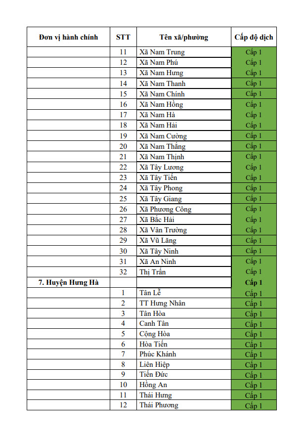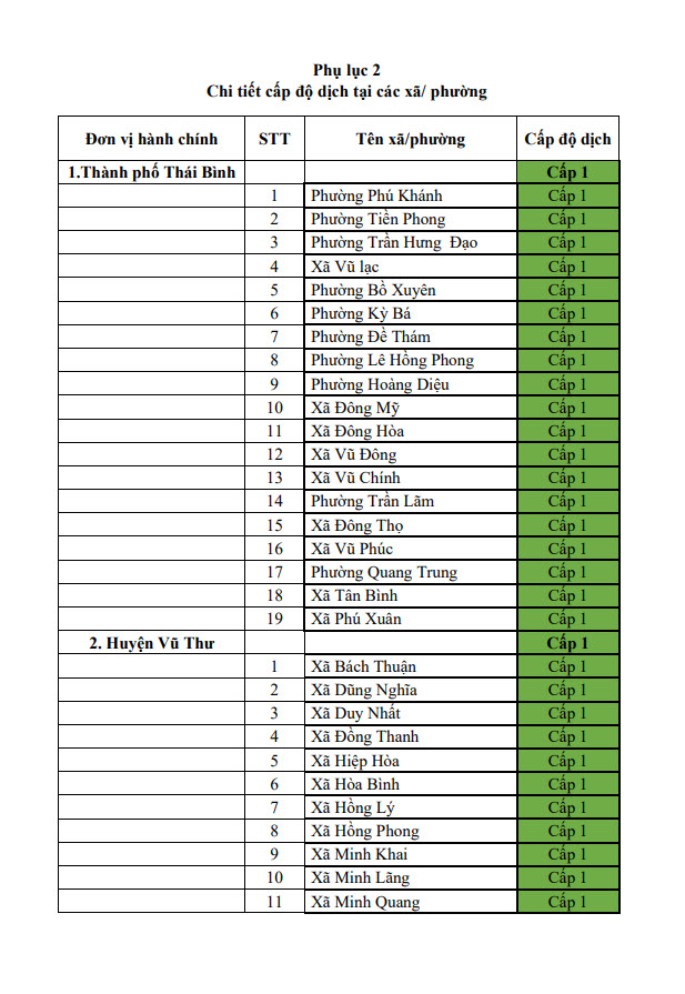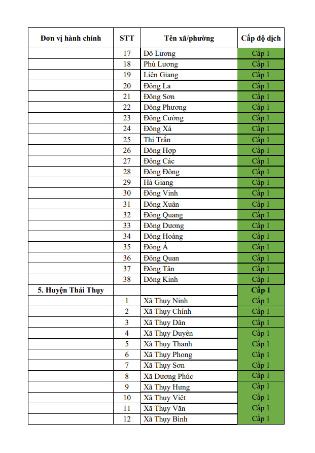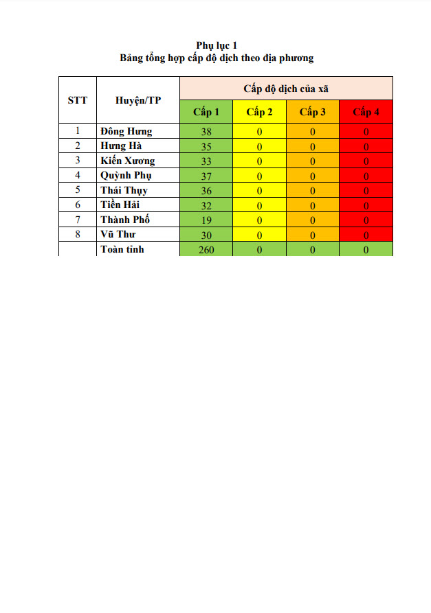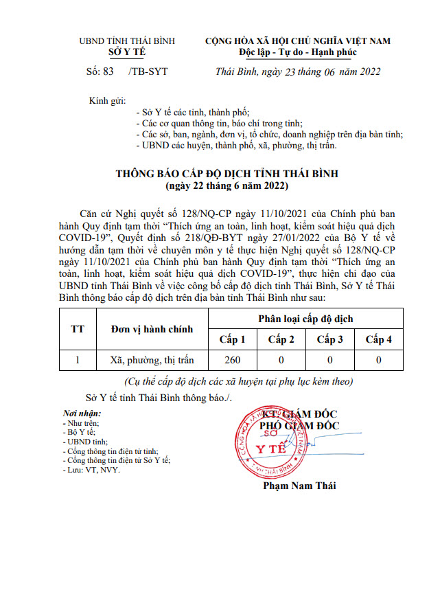 Thông báo cấp độ dịch tỉnh Thái Bình (ngày 22/6/2022)