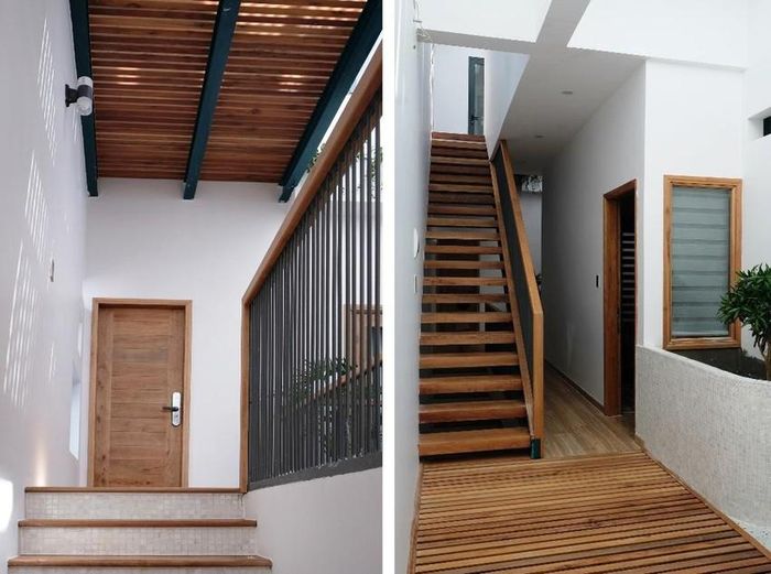 Ngôi nhà với phong cách hiện đại, đơn giản với tone màu chủ đạo trắng và gỗ tự nhiên.