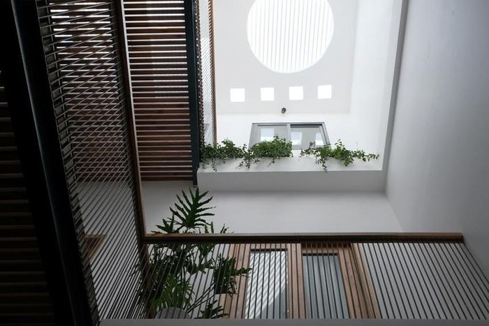 Ngôi nhà tiếp xúc với tự nhiên thông qua khoảng thông tầng. Các yếu tố nắng, thông gió tự nhiên, cây xanh trở thành điều tất yếu khi tổ chức không gian sống hiện đại.