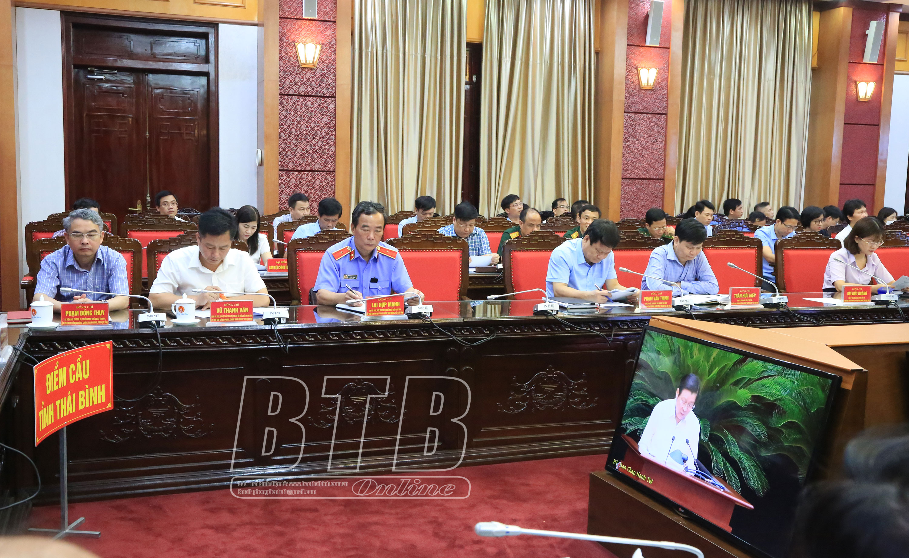 Dự hội nghị tại điểm cầu Thái Bình có đồng chí Nguyễn Tiến Thành, Phó Bí thư thường trực Tỉnh ủy, Chủ tịch HĐND tỉnh, Phó Trưởng ban Chỉ đạo PCTN,TC tỉnh; các đồng chí Ủy viên Ban Thường vụ Tỉnh ủy; thành viên Ban Chỉ đạo PCTN, TC tỉnh; lãnh đạo HĐND, UBND tỉnh, Ủy ban MTTQ tỉnh, các đoàn thể, chính trị - xã hội, lãnh đạo các sở, ban, ngành của tỉnh.