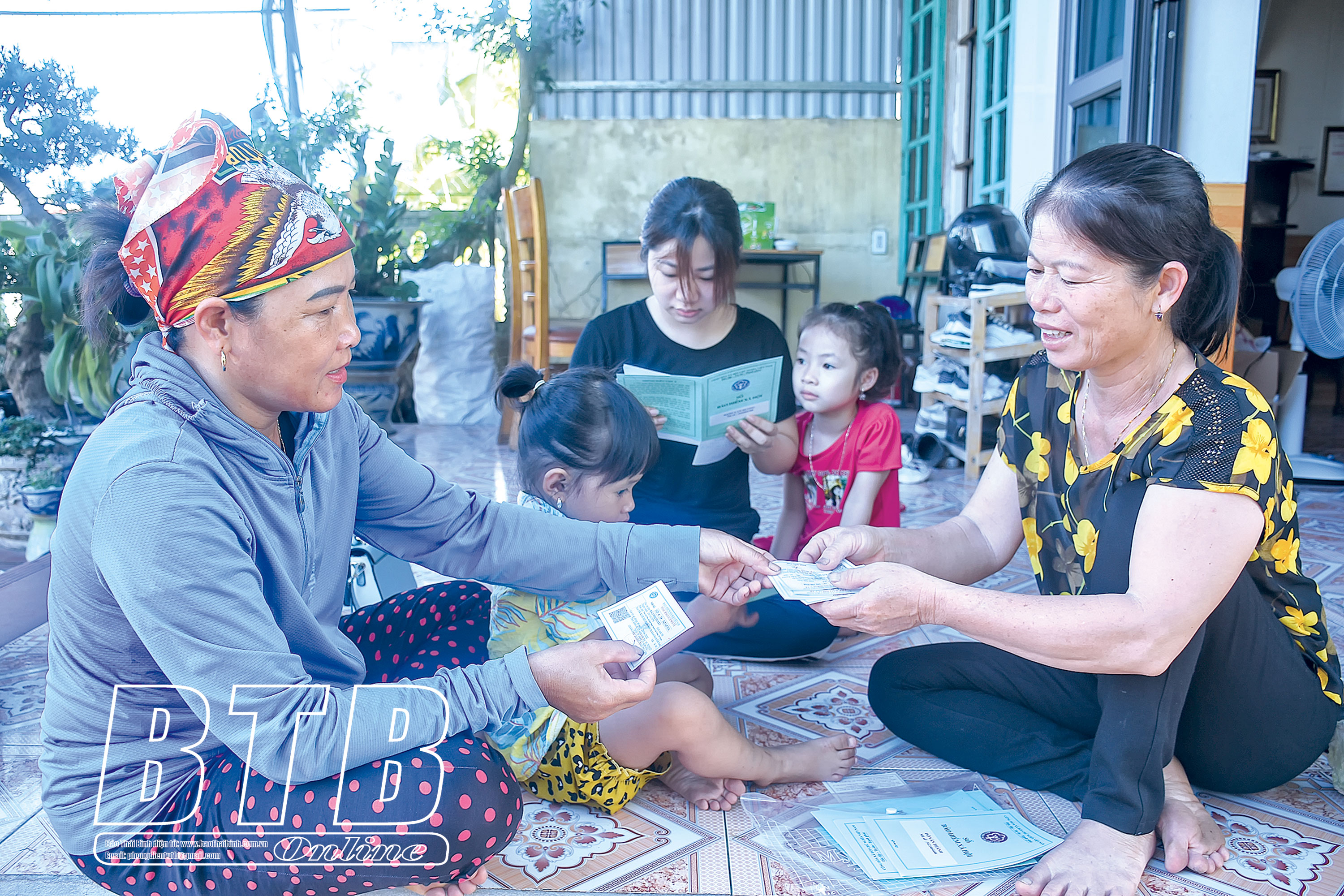 Cộng tác viên đại lý thu BHYT xã Bình Thanh (Kiến Xương) hướng dẫn người tham gia BHYT hộ gia đình.