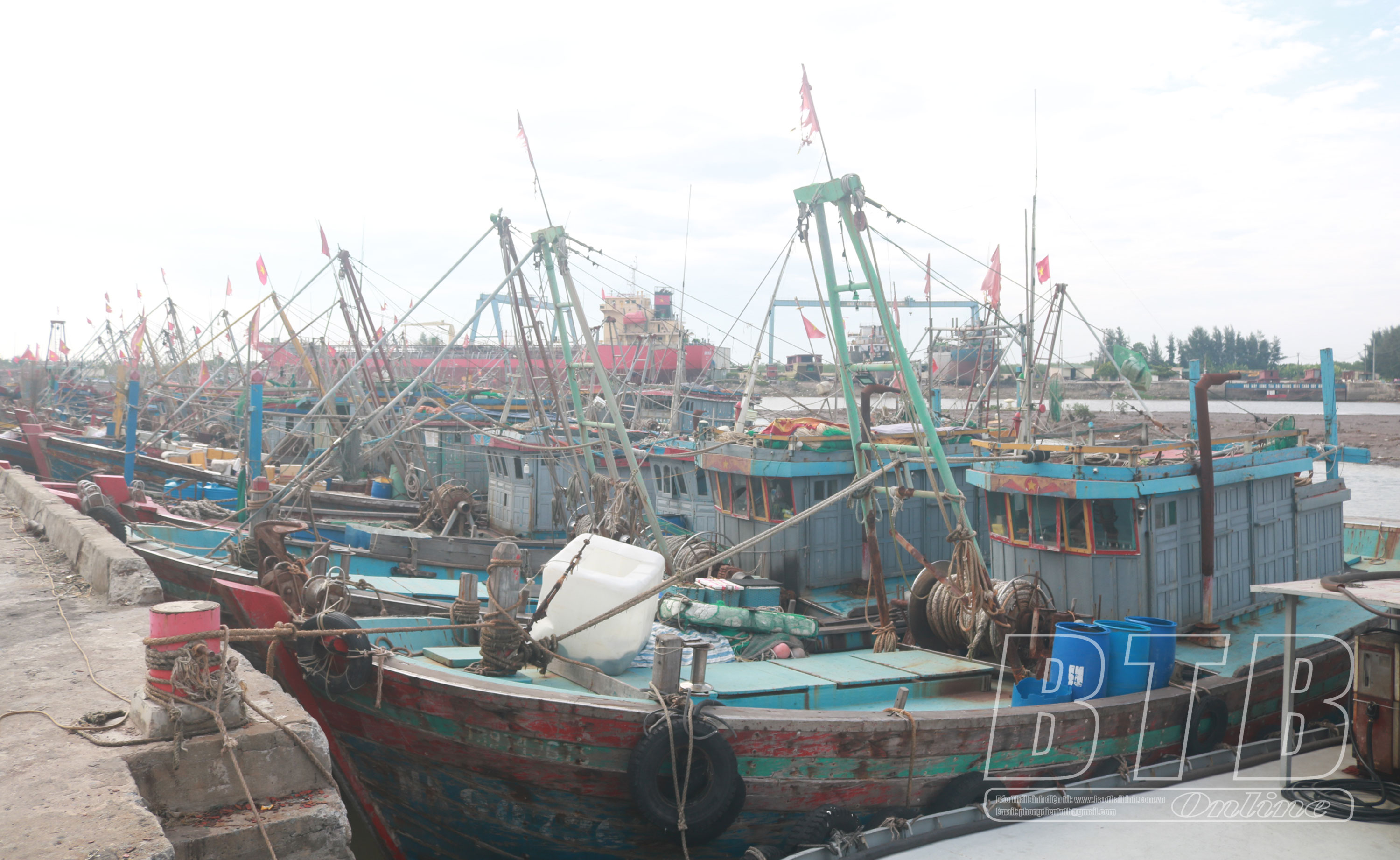 Tàu, thuyền neo đậu tại cảng cá Tân Sơn (Thái Thụy).