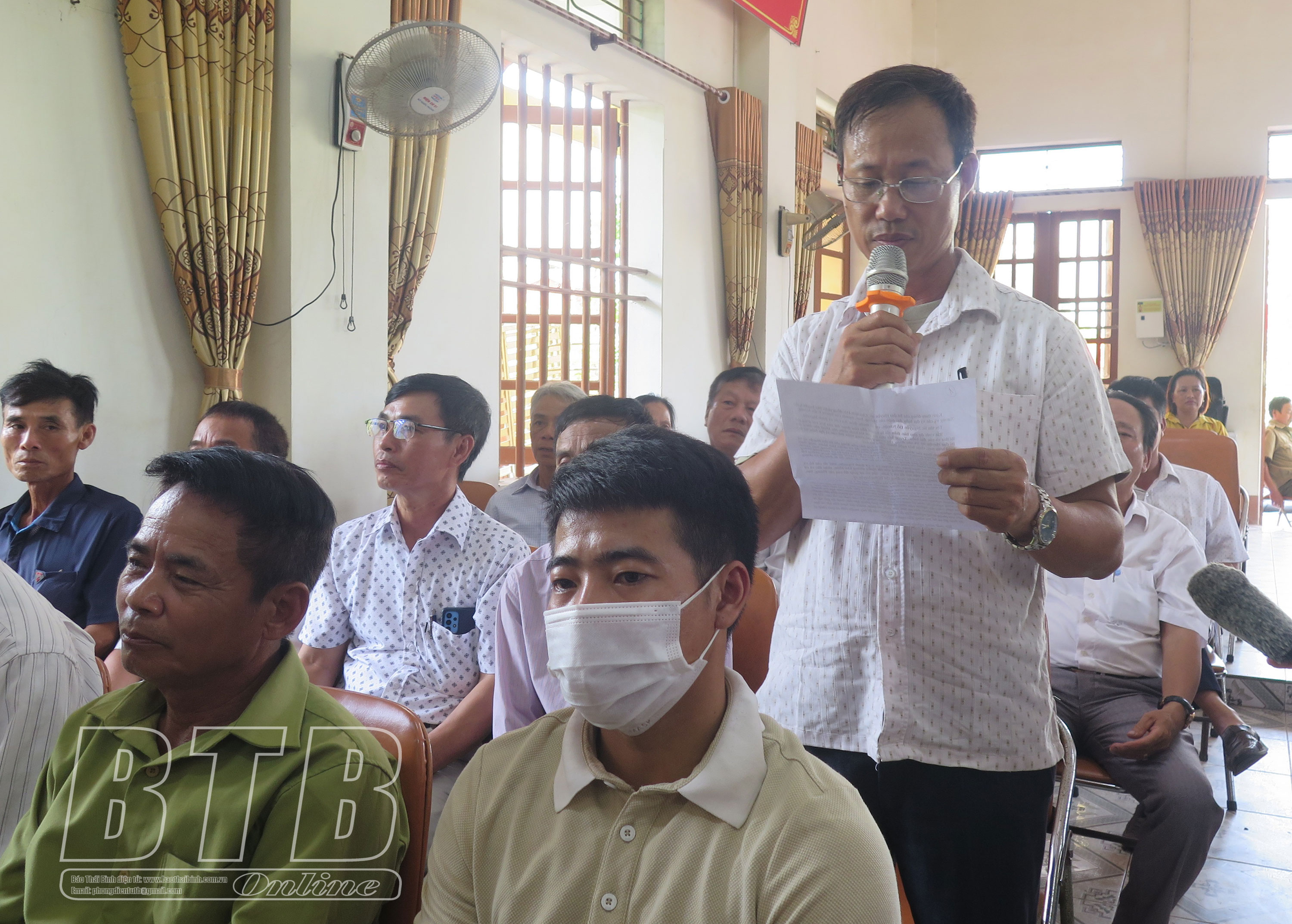 Với tinh thần thẳng thắn, cởi mở và xây dựng, các đại biểu đã phát biểu ý kiến, kiến nghị với đồng chí Bí thư Huyện ủy và chính quyền địa phương tập trung vào các vấn đề: Cơ chế, các giải pháp tháo gỡ khó khăn và hỗ trợ nông dân trong sản xuất nông nghiệp; giải pháp khắc phục tình trạng hệ thống kênh mương, đường giao thông nội đồng đã xuống cấp; vấn đề đo đạc và cấp giấy chứng nhận quyền sử dụng đất; tình trạng thiếu nước sạch phục vụ sinh hoạt của nhân dân; giải pháp nâng cao chất lượng công tác hòa giải ở cơ sở...